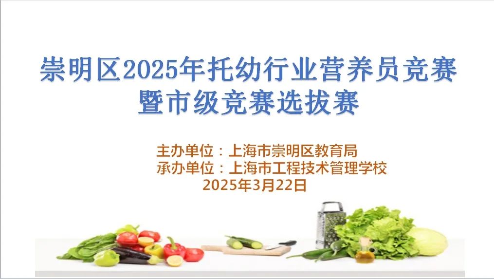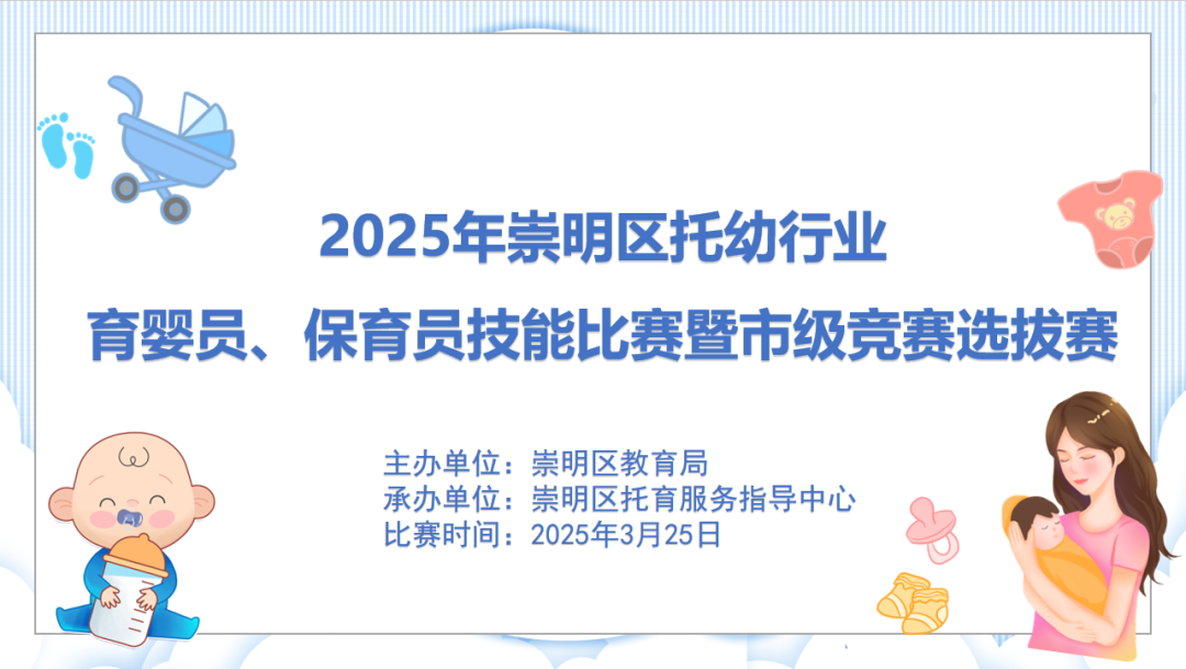 2025年3月,崇明区教育局托幼科协同区托育服务指导中心、上海市工程技术管理学校举办了2025年托幼行业职业技能大赛暨市级竞赛选拔赛。