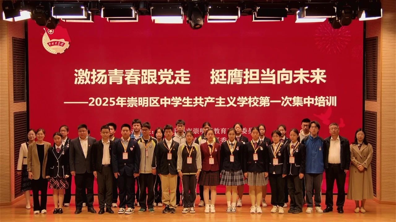 史一帆为2025年崇明区中学生共产主义学校培训班开班授旗。傅欣、史一帆、培训班班长黄伊灵同学共同启动揭牌“青春会读·爱学习”崇明教育青马读书班。陆惠星宣读本次培训班班委会名单,并为班委会成员佩戴学员胸牌。阮江南为2024年区级中学生共产主义学校的优秀学员代表颁发优秀学员荣誉证书。姜企华颁发2024年区级中学生共产主义学校学员结业证书,各校团委书记上台领取证书。上实东滩高中倪子涵同学作为2024年学员代表分享了在崇明区中学生共产主义学校的学习经历和感悟。崇明中学黄伊灵同学作为2025级学员代表做表态发言。