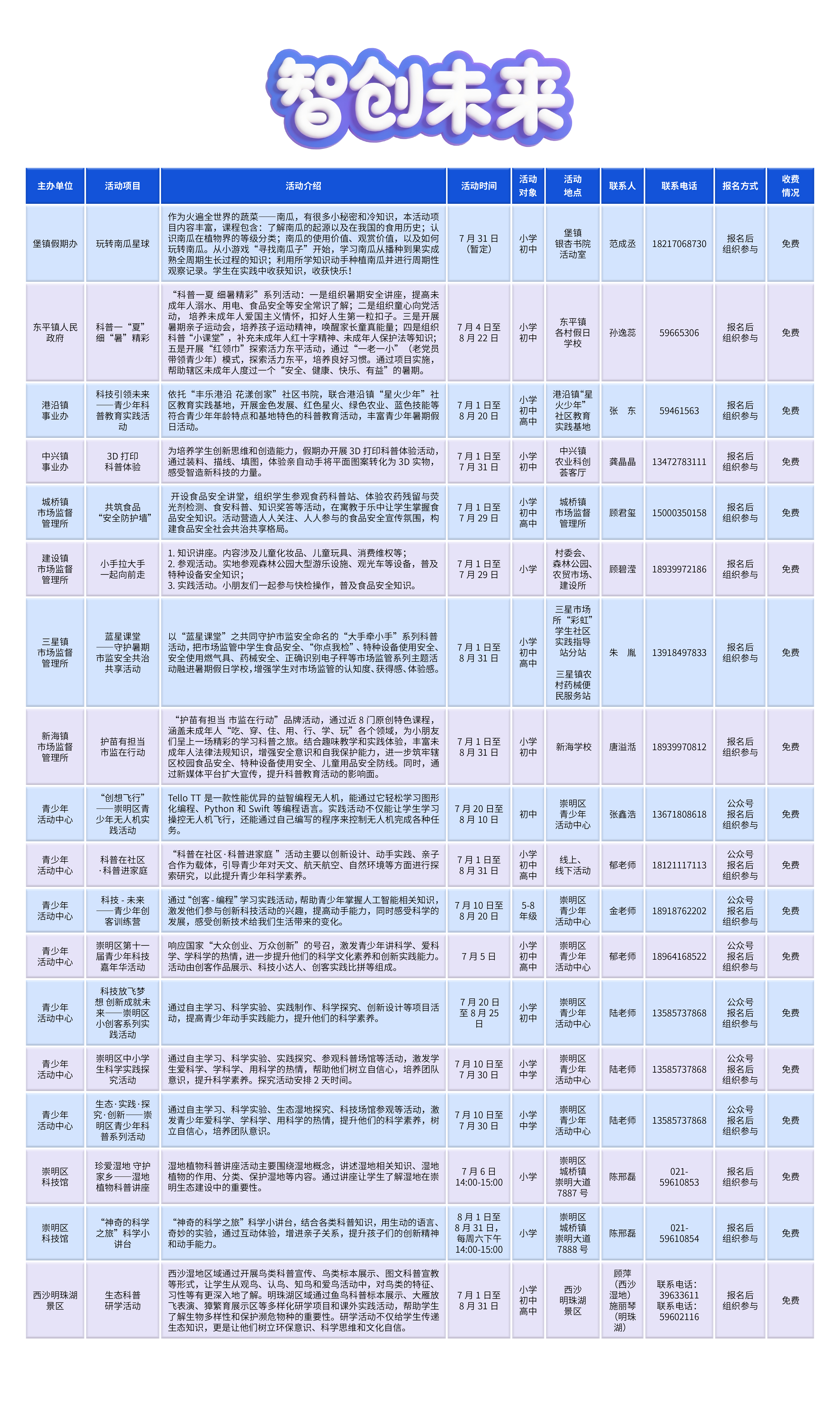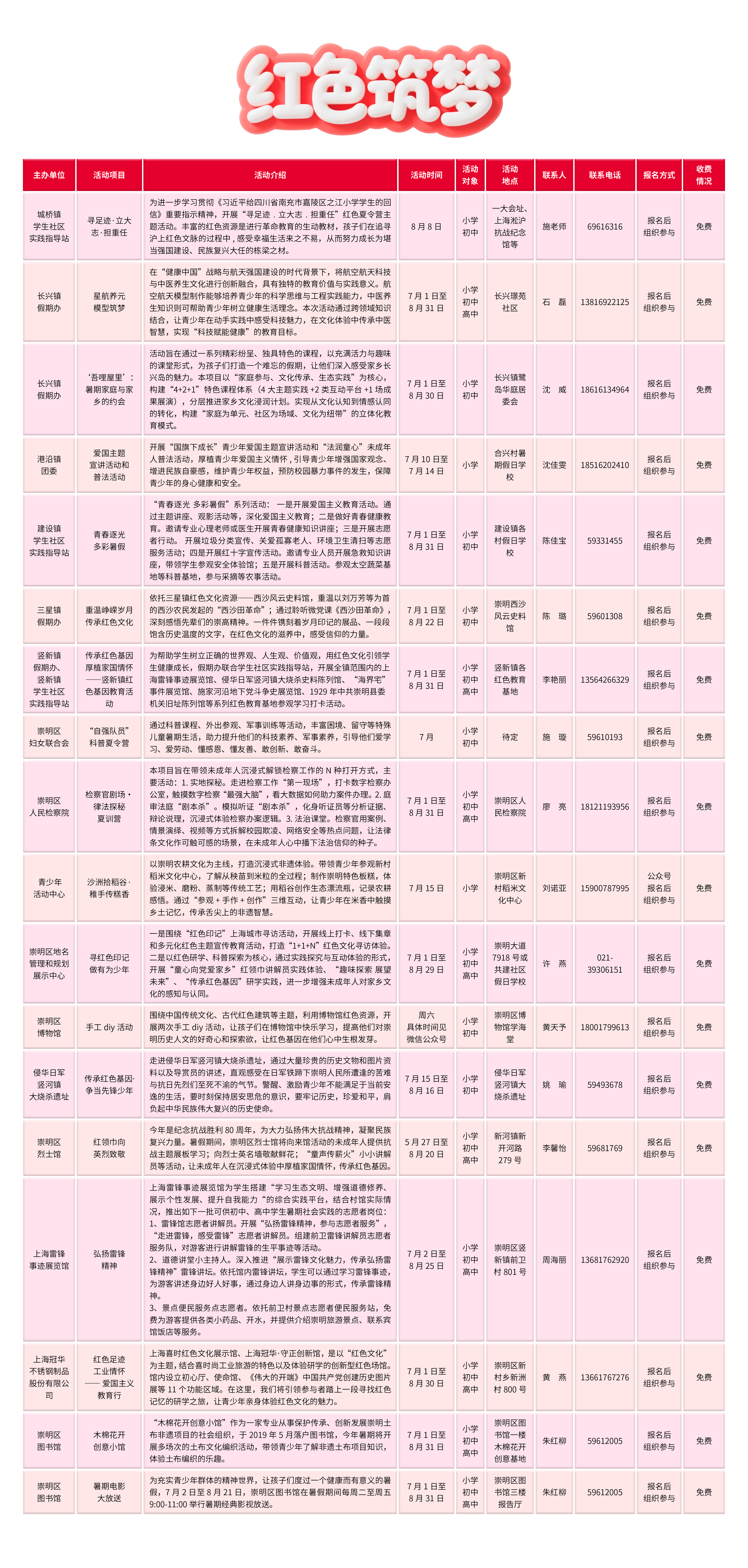 2025年崇明区未成年人暑期活动菜单出炉啦!