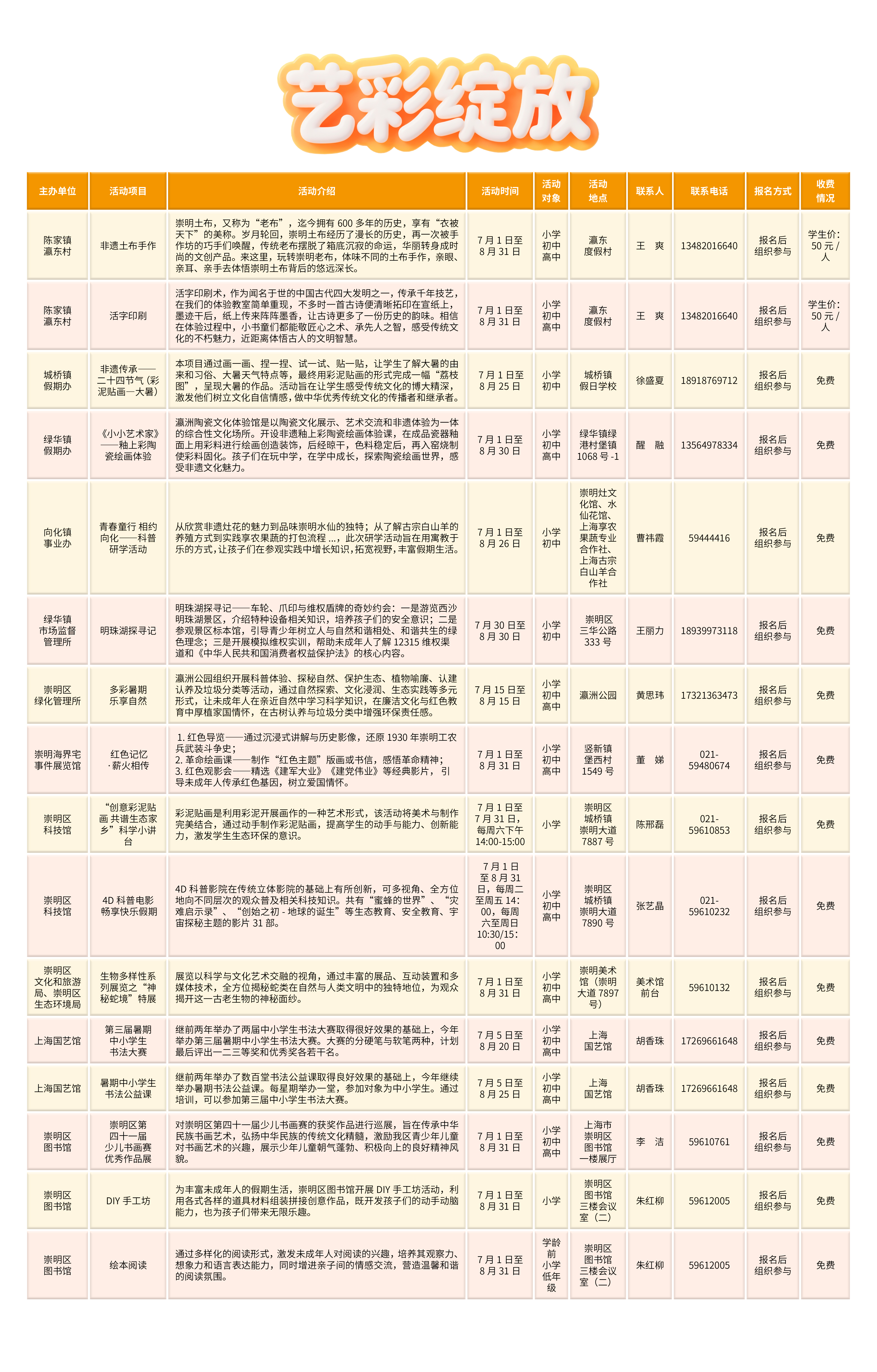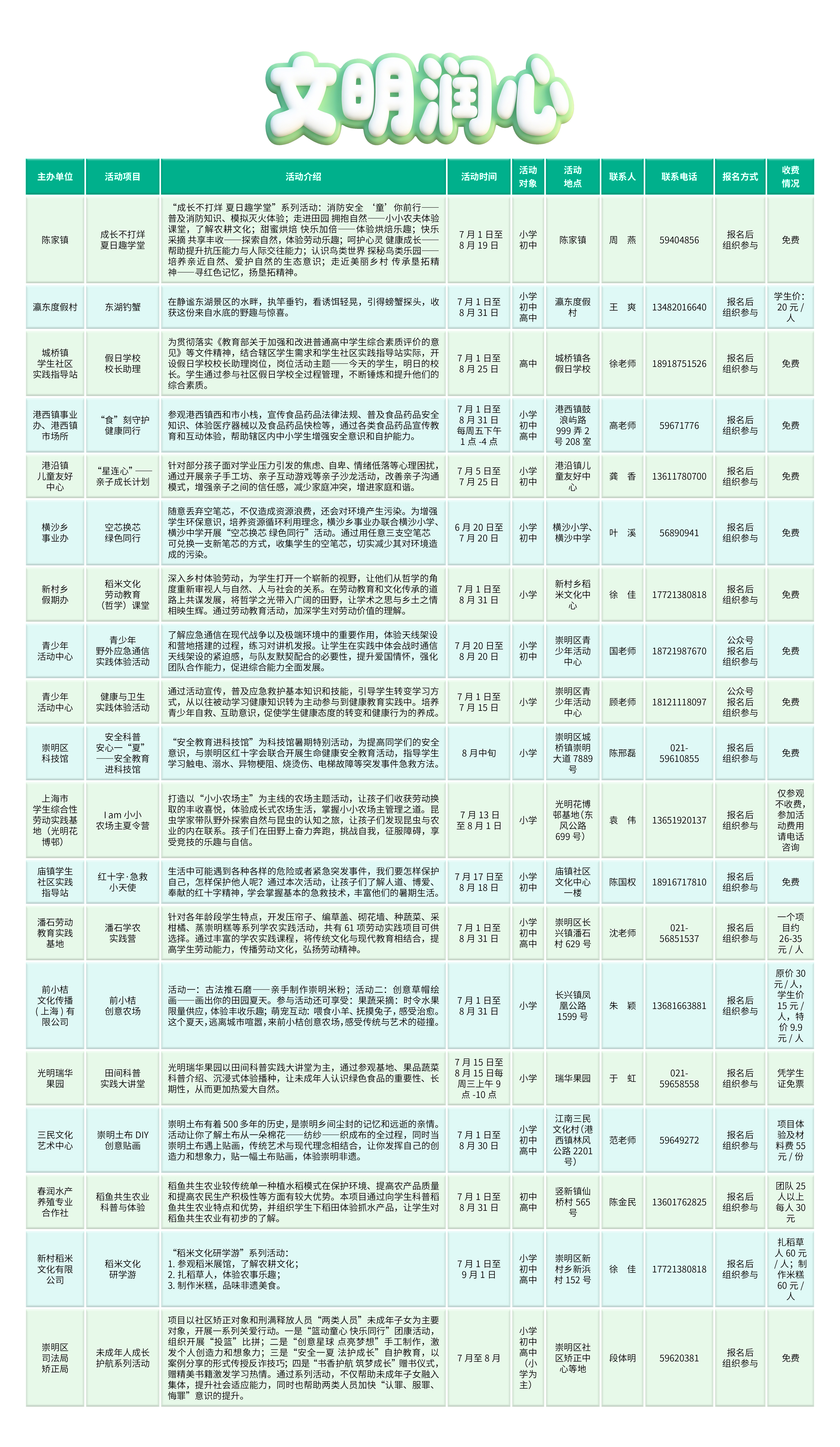 友情提醒:上述活动以事先预约为准,亦可查看《2025年崇明区学生假期实践指南》。