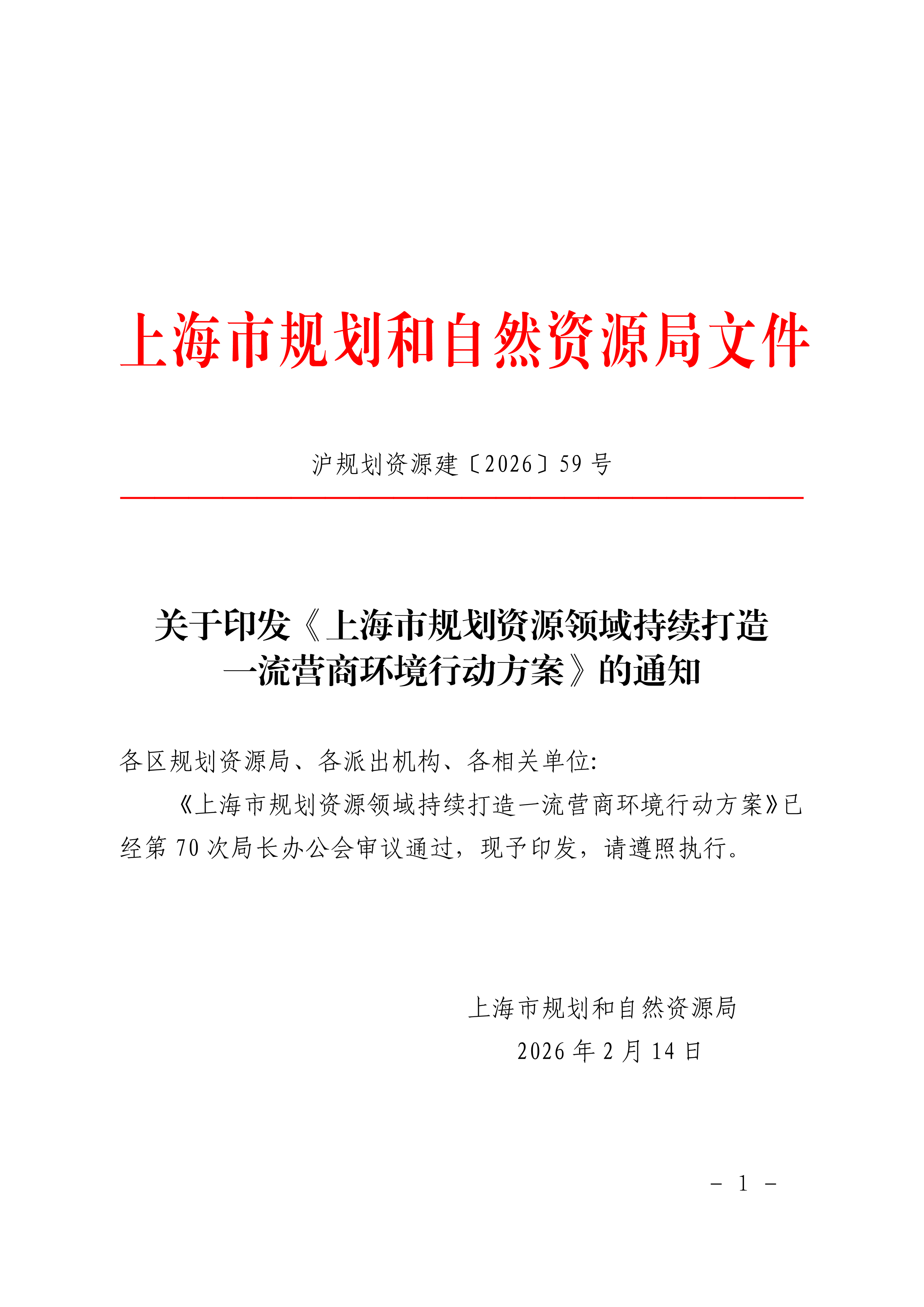 《上海市规划资源领域持续打造一流营商环境行动方案》已经第70次局长办公会审议通过,现予印发,请遵照执行。
