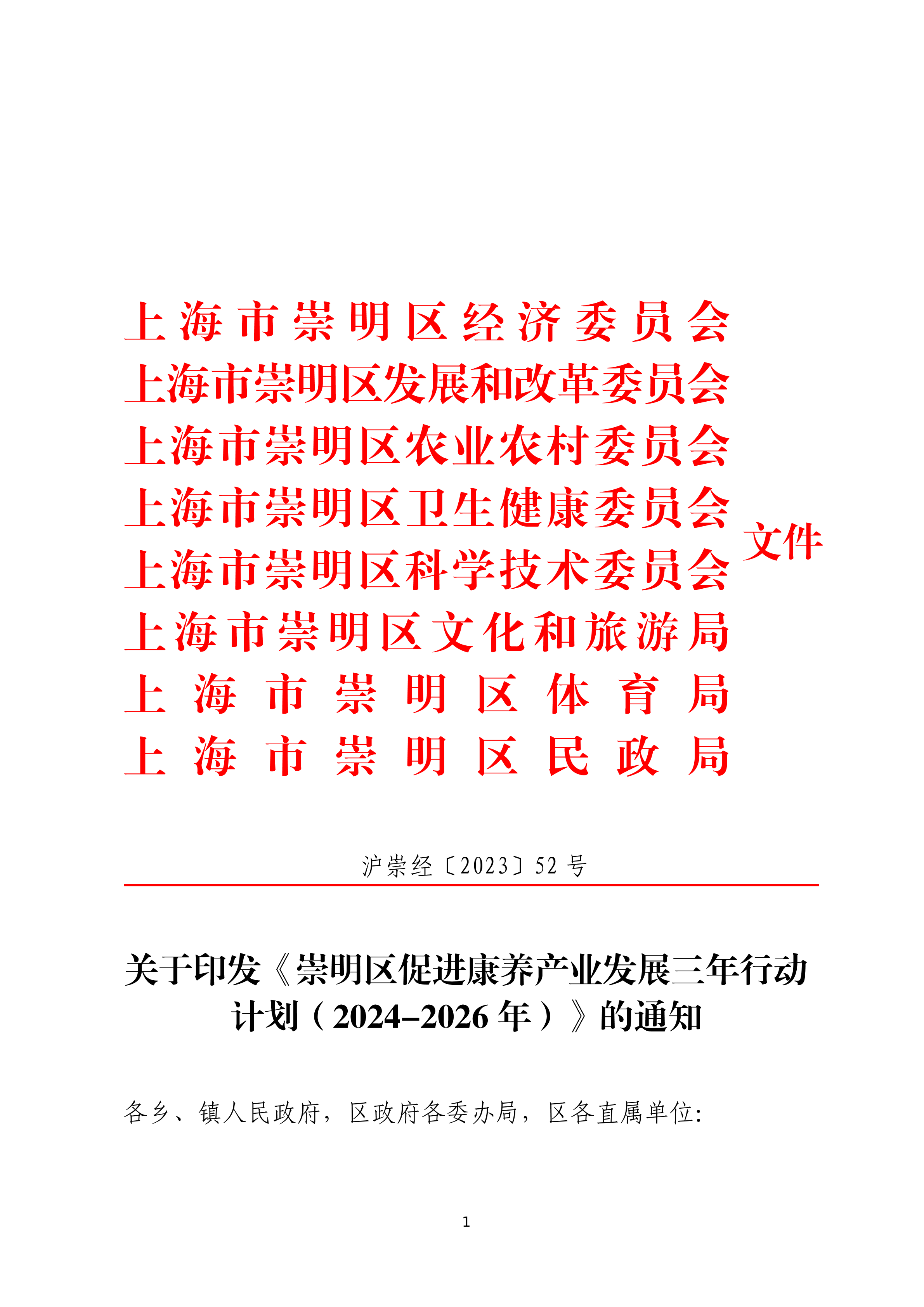 经区政府同意,现将《崇明区促进康养产业发展三年行动计划(2024-2026年)》印发给你们,请认真按照执行。