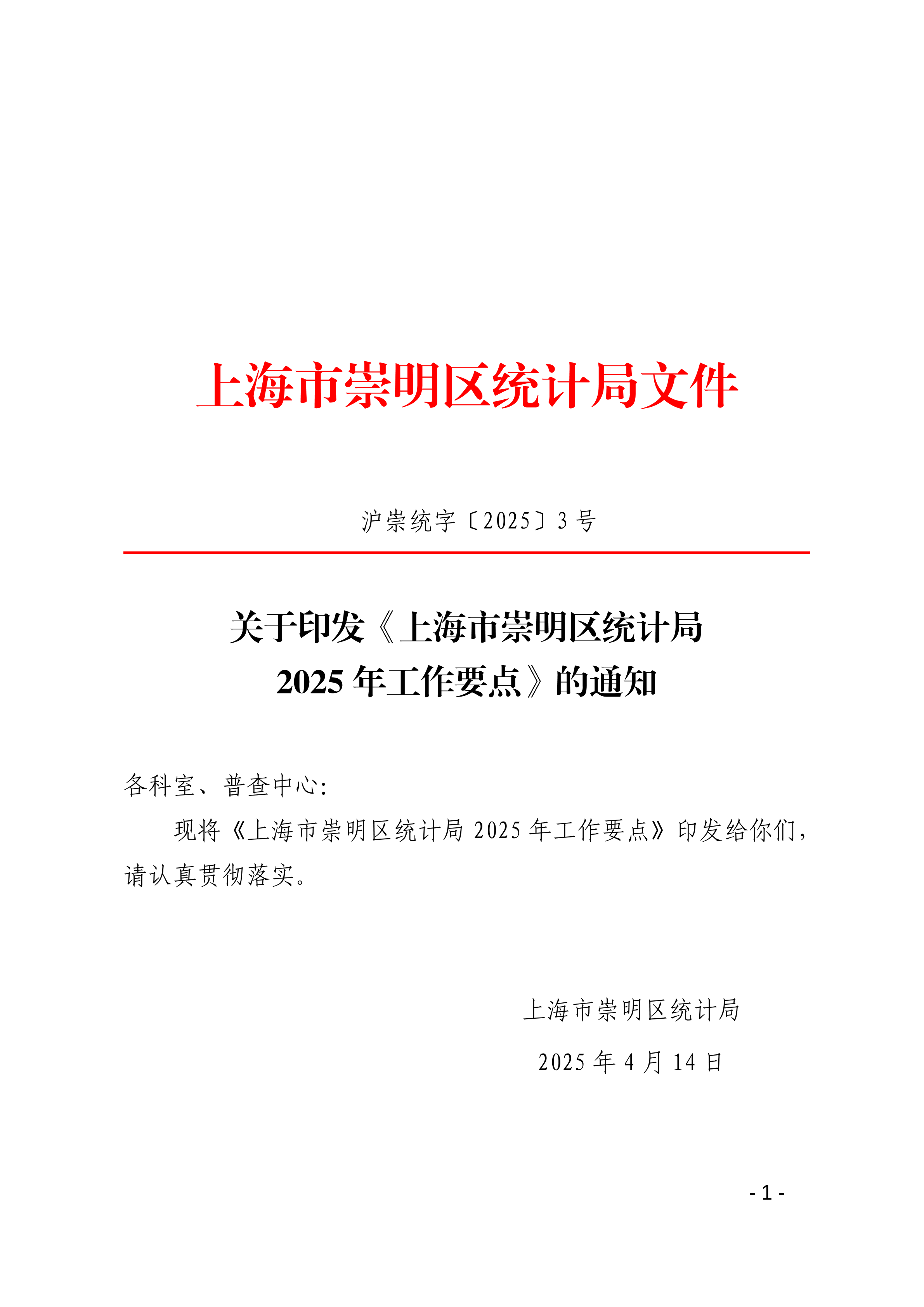 现将《上海市崇明区统计局2025年工作要点》印发给你们,请认真贯彻落实。