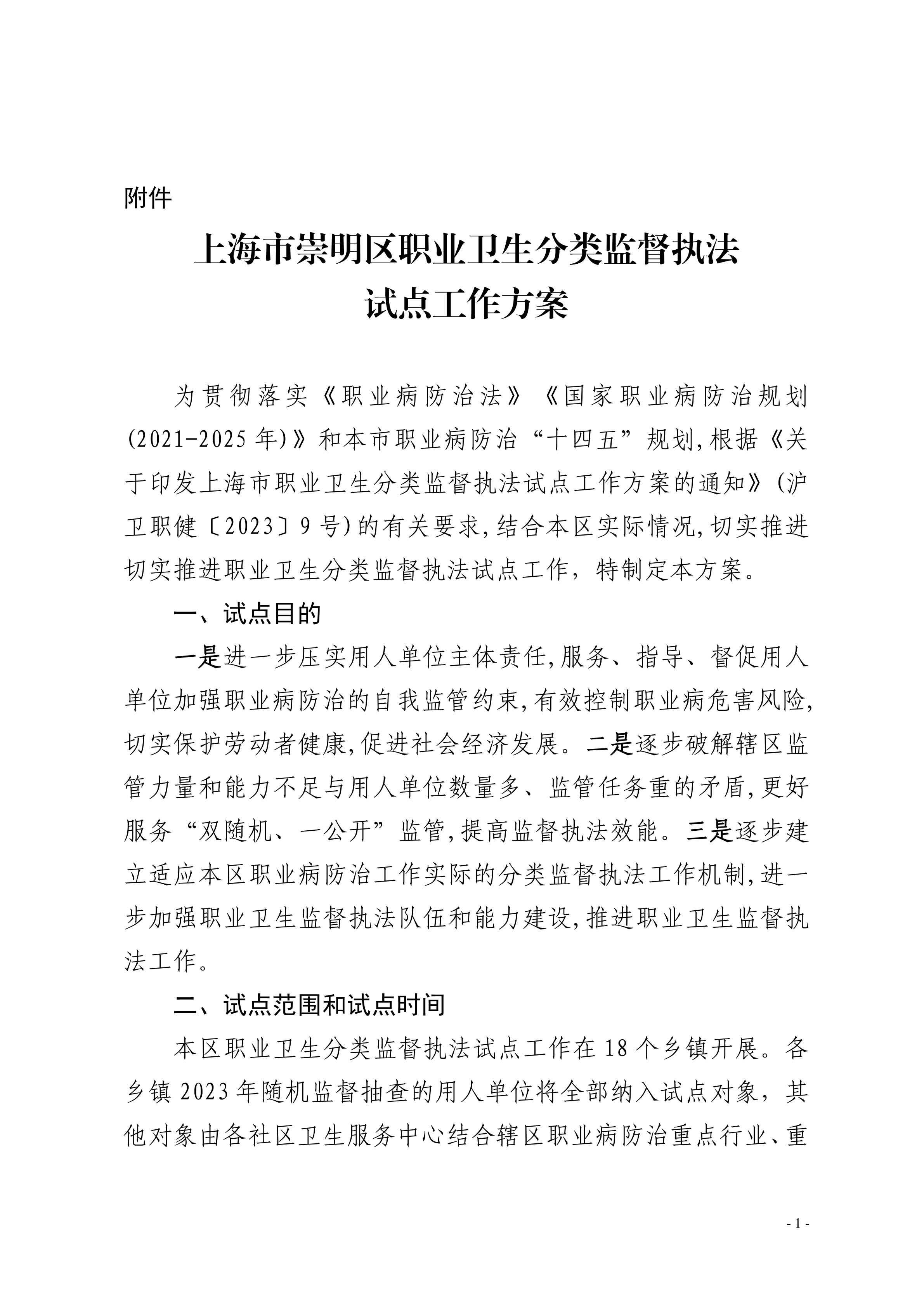 附件:上海市崇明区职业卫生分类监督执法试点工作方案