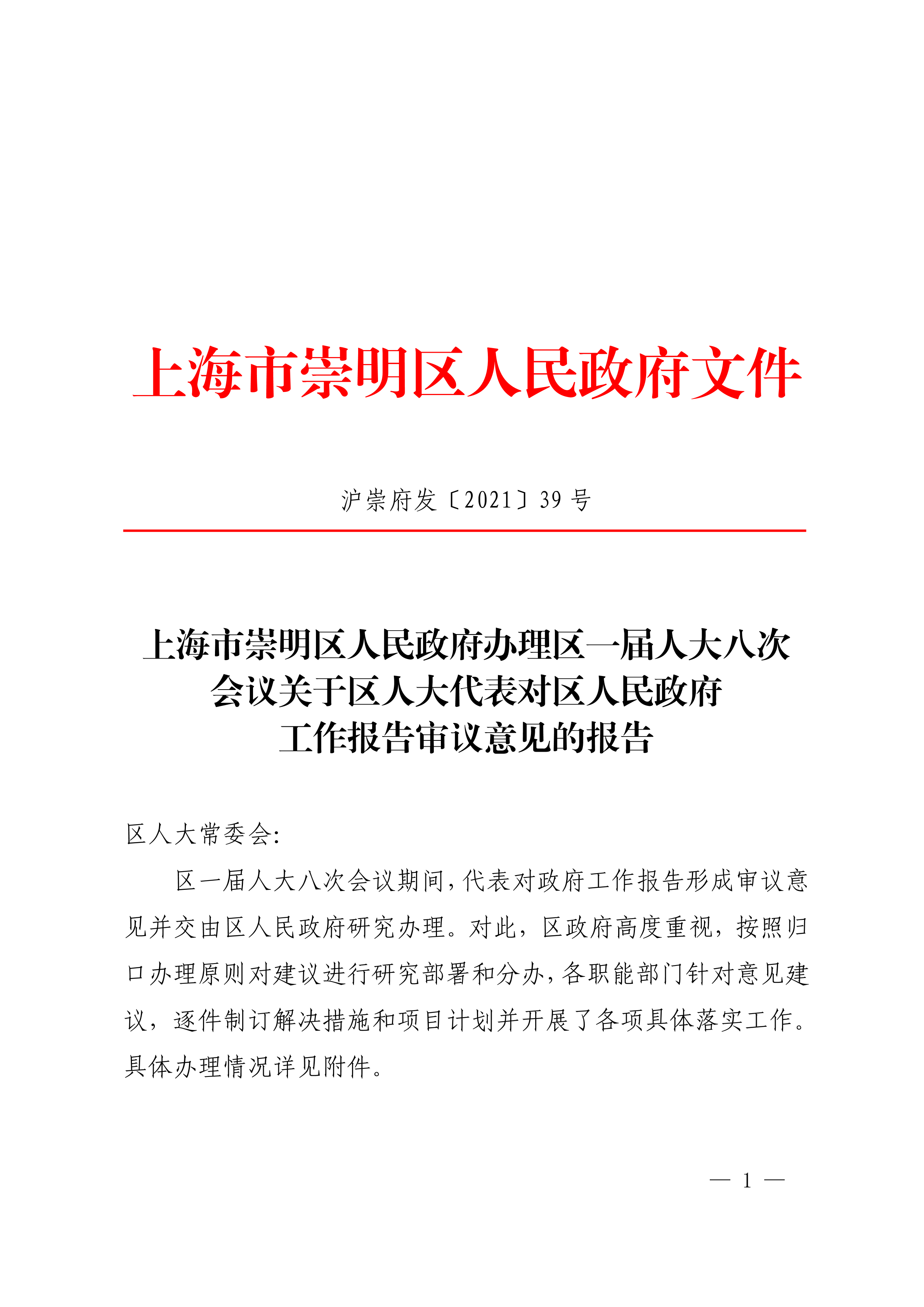 附件:上海市崇明区人民政府办理区一届人大八次会议关于区人大代表对区人民政府工作报告审议意见的报告