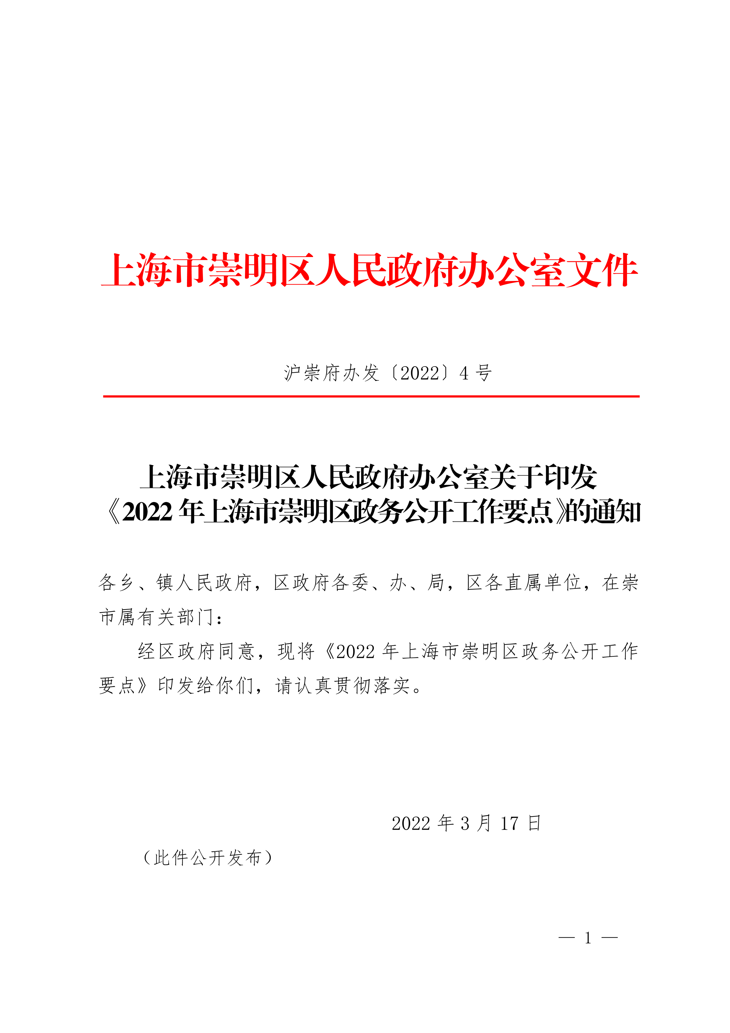 2022年上海市崇明区政务公开工作要点