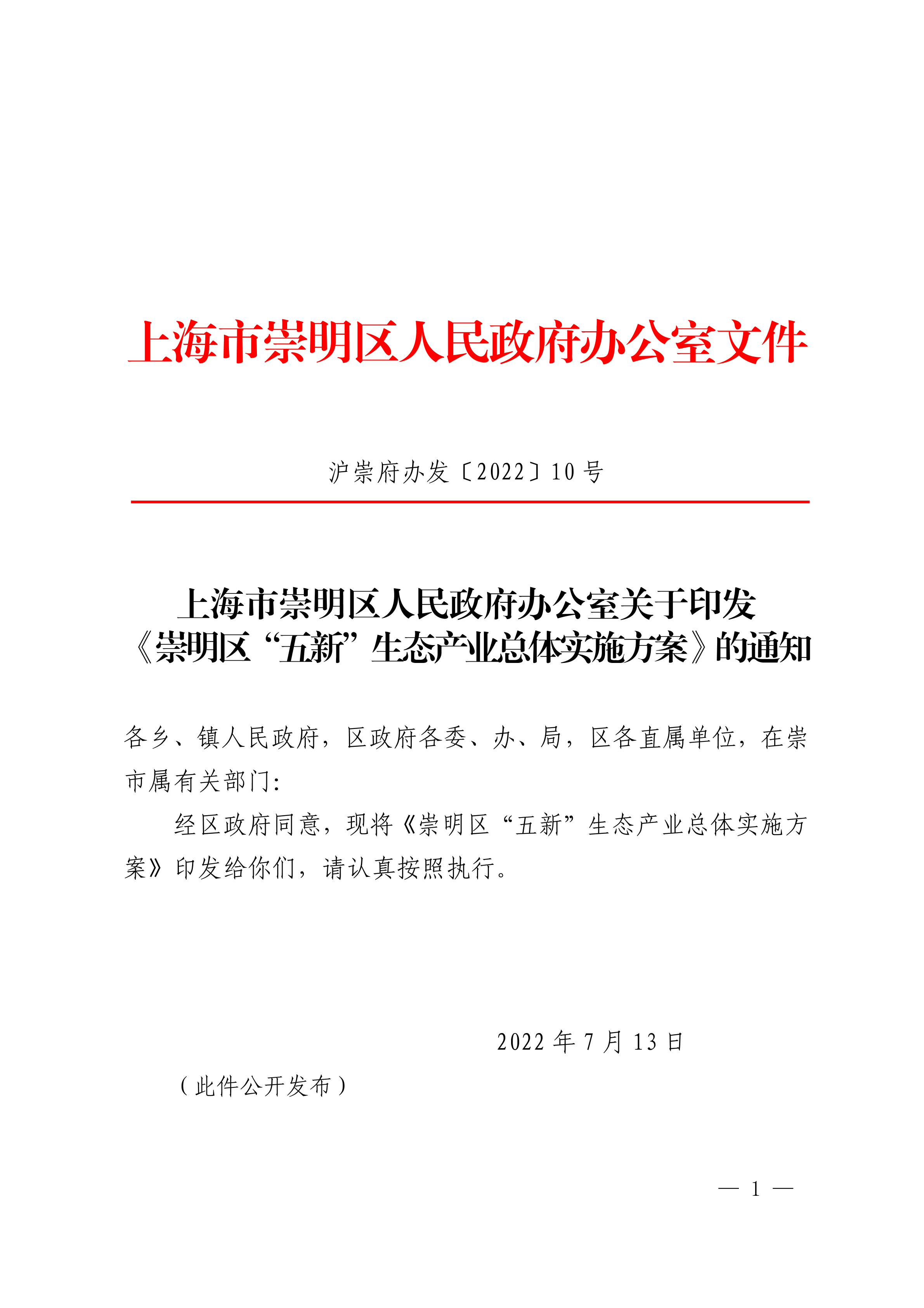 经区政府同意,现将《崇明区“五新”生态产业总体实施方案》印发给你们,请认真按照执行。