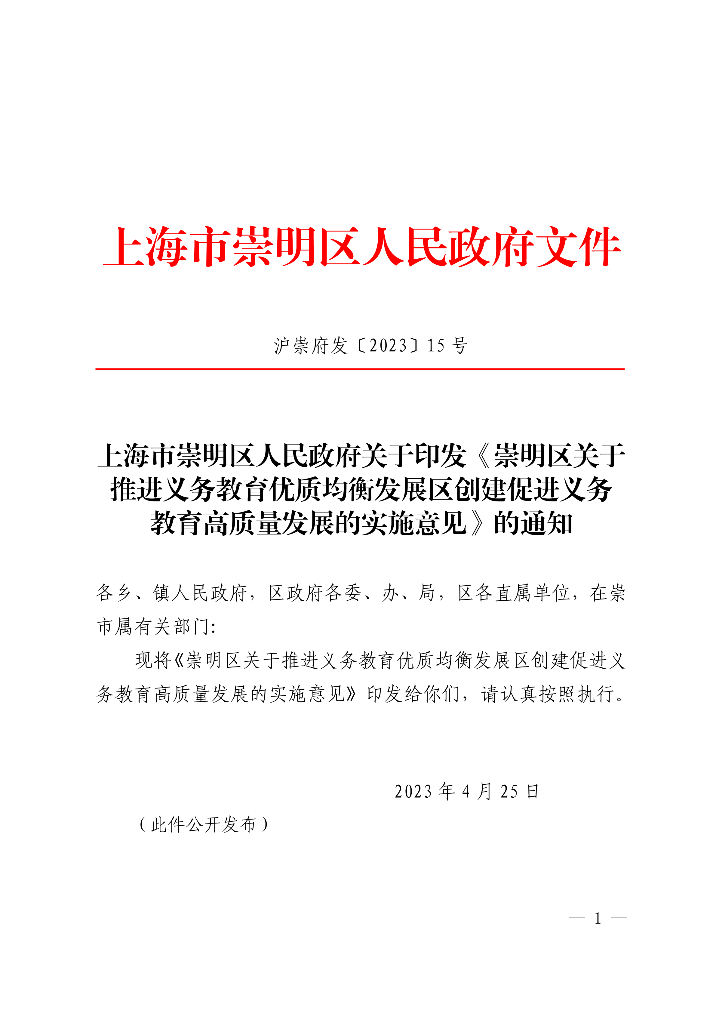 沪崇府发〔2023〕15号