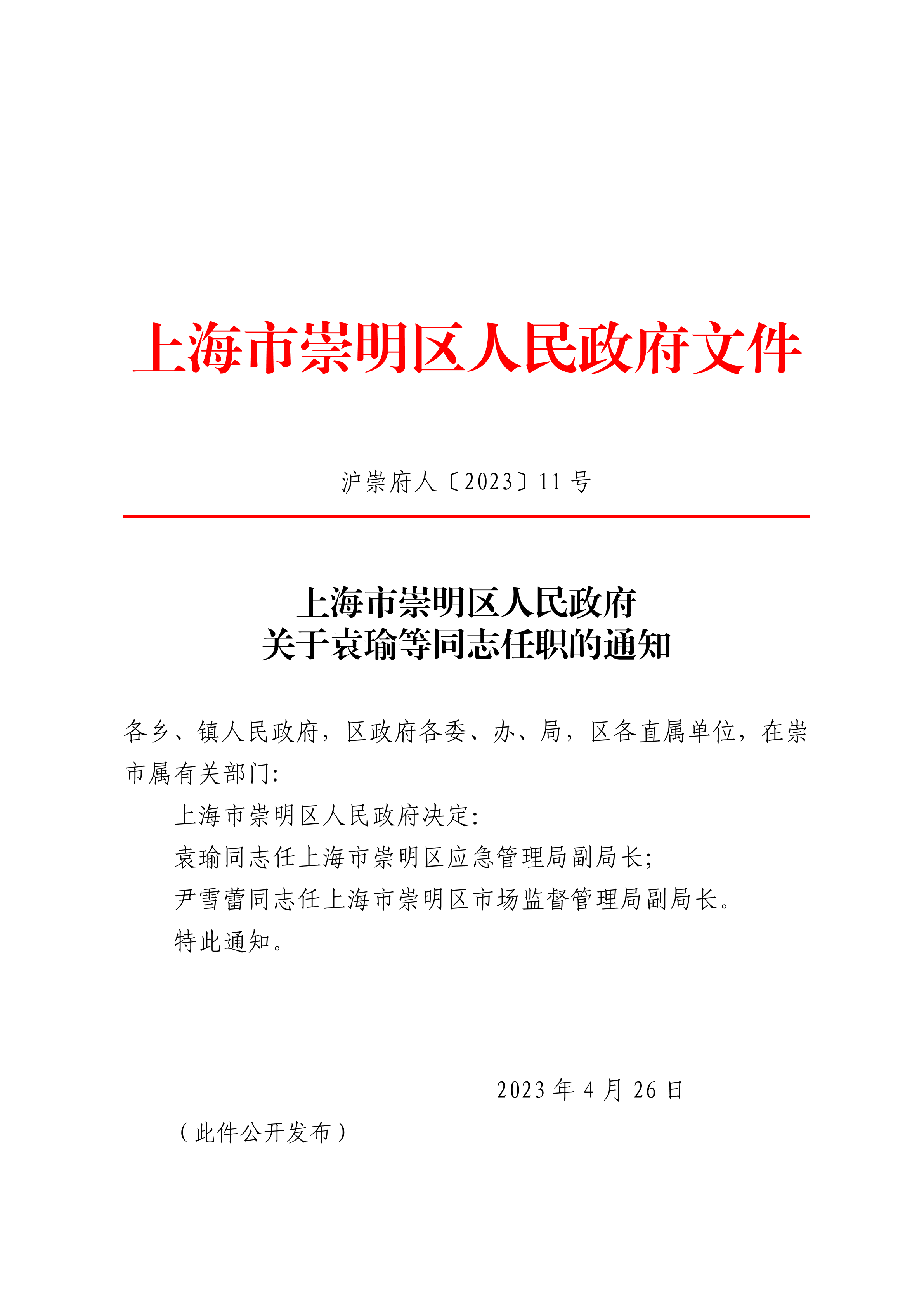 沪崇府人〔2023〕11号