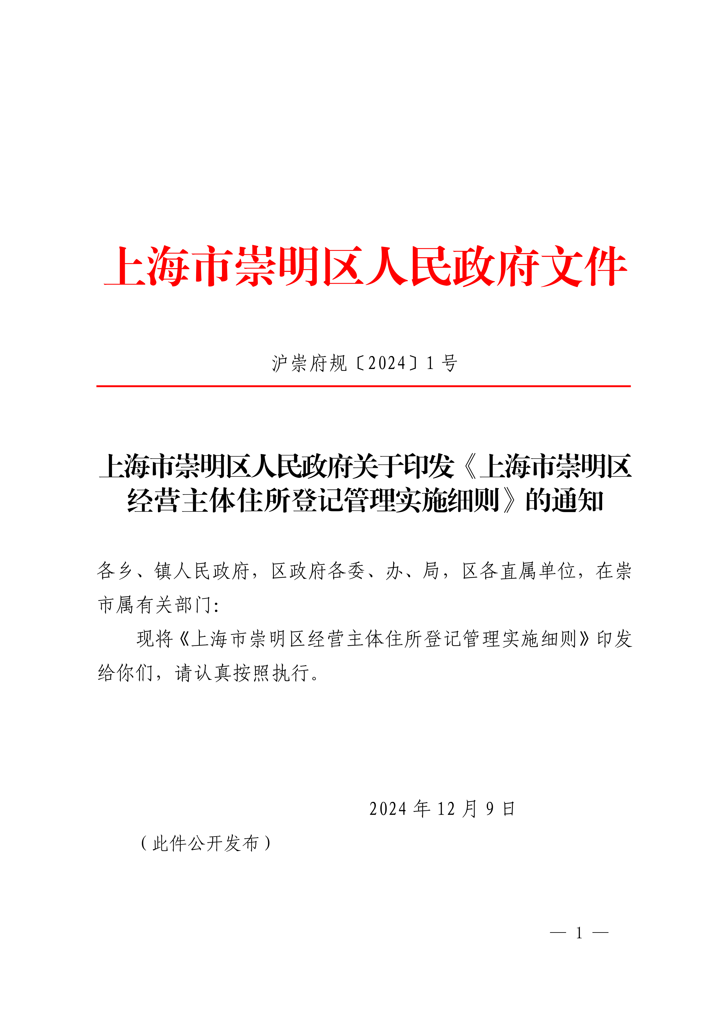 沪崇府规〔2024〕1号