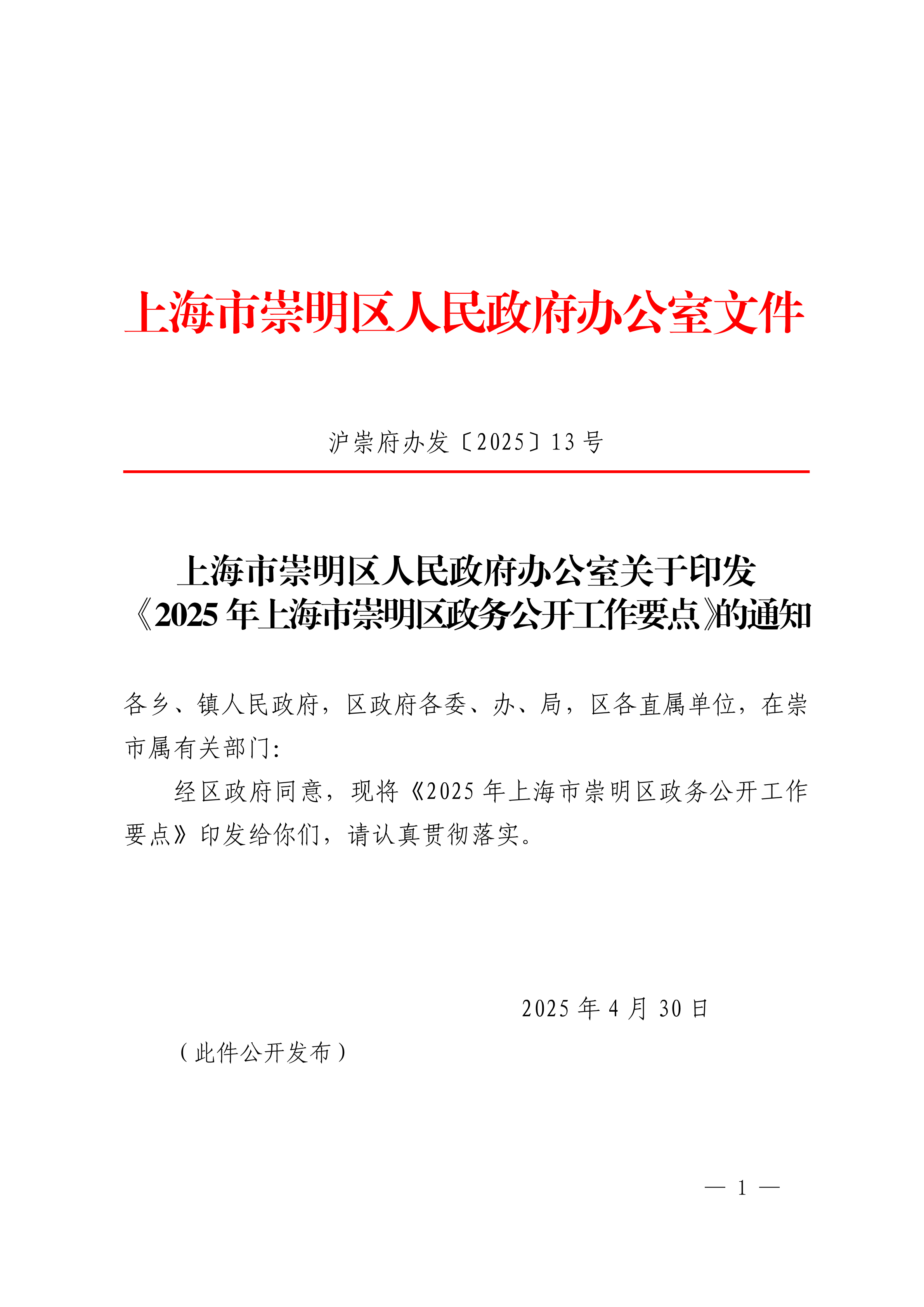 经区政府同意,现将《2025年上海市崇明区政务公开工作要点》印发给你们,请认真贯彻落实。
