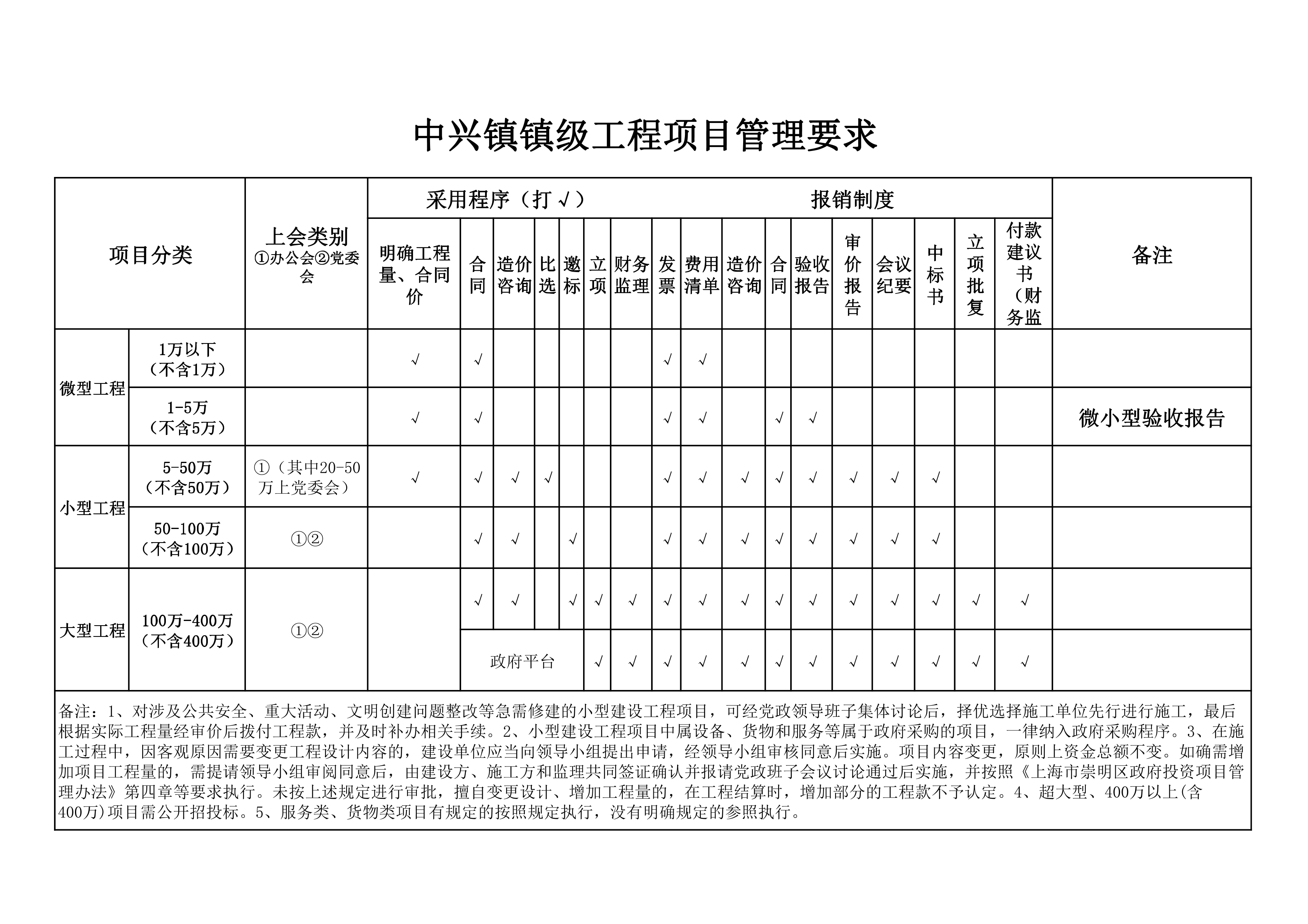 总投资100万以下需调整的项目由负责条线提出申请,根据分级管理原则,经党政班子集体讨论审议通过,凭抄告内容重新调整决策内容。100万及以上需调整的工程类项目需经党委会审议通过,凭抄告内容重新将项目计划报区发展改委革,并按照《上海市崇明区政府投资项目管理办法》第二章等规定执行。
