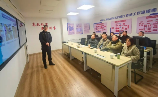 考察组一行人参观了瑞金二路街道第三综合网格实体化运作中心,现场听取了瑞金二路街道“多格合一”工作站建设、力量配备、问题处置等工作情况,并就网格工作站的区域划分、组织架构、运行机制等工作进行深入交流学习。