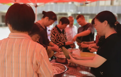 包粽子环节中,大家通力协作,将糯米、红豆等食材裹入翠绿粽叶,指尖翻飞间完成数百只粽子,随后,志愿者们将粽子送往村内高龄老人、孤寡家庭家中,让粽香化作关怀纽带,在传承“驱邪避疫” 民俗的同时,传递崇德尚善的传统美德,彰显节日的人文温度。