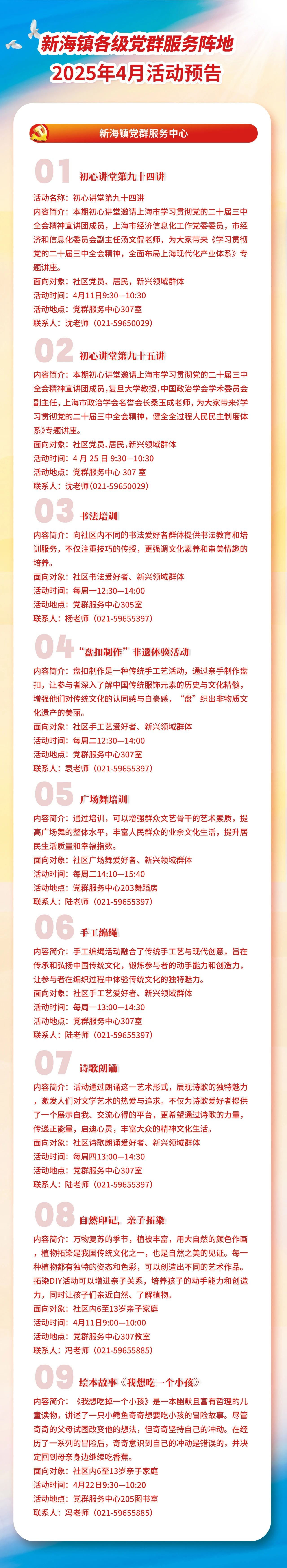 党群阵地@你 2025年4月活动预告精彩来袭,新海镇各级党群阵地邀您参与!