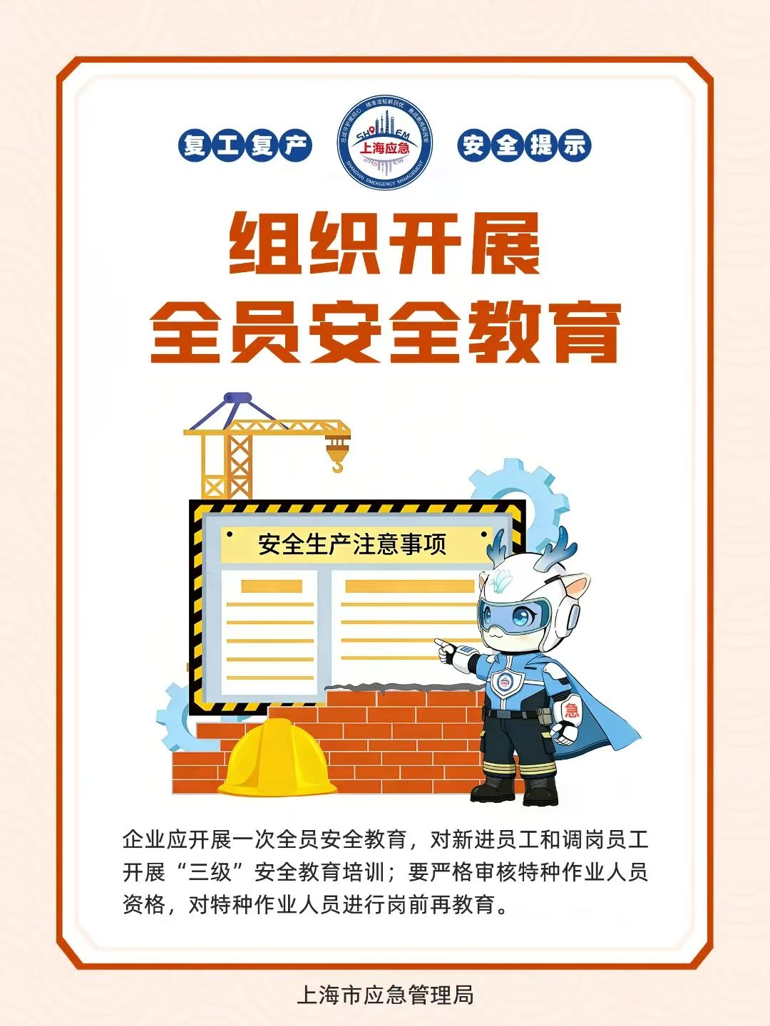 春节假期结束各类生产经营单位将陆续复工复产,这一时期是安全事故的易发期,各经营主体单位及员工需高度警惕牢记这三个“组织”、两个“切勿”,确保各项工作安全开展!