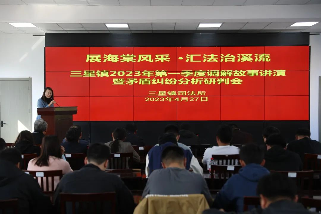 为纪念毛泽东同志批示学习推广“枫桥经验”60周年暨习近平总书记指示坚持和发展“枫桥经验”20周年,展示基层调解员的调解风貌和能力水平,并对辖内矛盾纠纷进行梳理总结和分析研判, 4月27日三星镇举办“展海棠风采 汇法治溪流”第一季度调解故事讲演暨矛盾纠纷分析研判会活动。