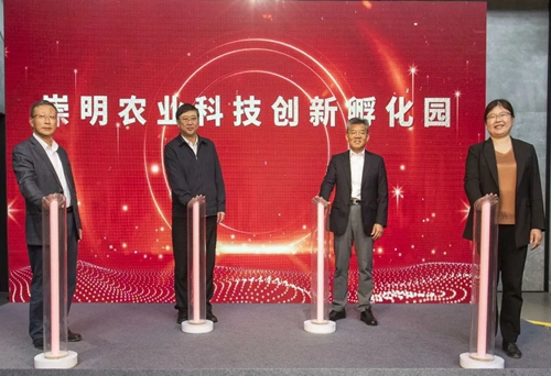 市农业农村委总经济师施忠,市农科院院长蔡友铭,区委副书记、区长李峻,上海海洋大学副校长江敏,副区长张秩通等出席并共同为崇明农业科技创新孵化园揭牌。