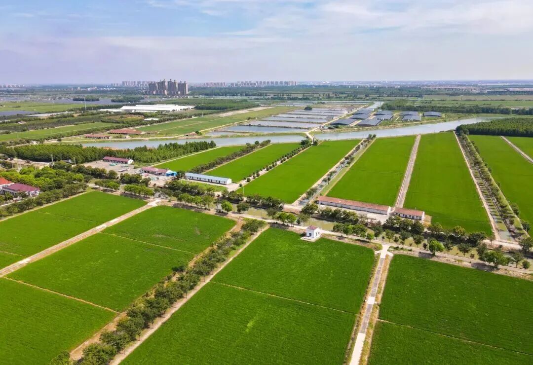 俯瞰城桥镇鳌山垦区粮田