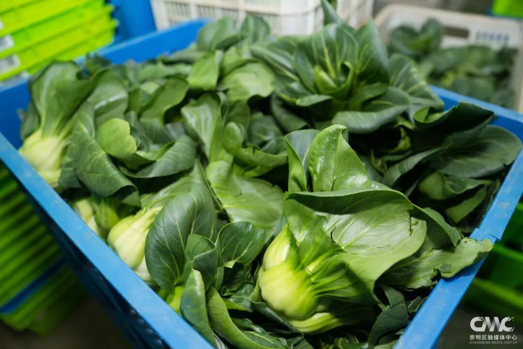 在竖新镇的上海静捷蔬菜专业合作社,加工配送中心一派忙碌景象,流水线有序运转。青菜、杭白菜、菠菜……合作社主打绿色无公害的崇明本地蔬菜,产品主要配送至上海各大商超、餐馆、食堂。通过“自有基地+采后加工+物流配送+农企对接”的订单农业模式,合作社开足马力,将田间地头的“崇明鲜品”及时配送到市民餐桌。“我们是绿叶菜的核心基地,市里的需求量还是蛮大的。比如青菜,一天出货量就将近18吨。”基地负责人王魁表示。