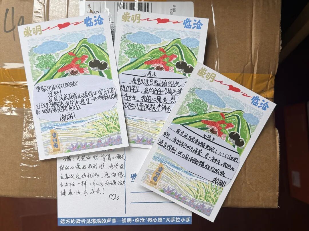 “我想要一双38码的粉色板鞋”“我的心愿是希望获得一套粉色文具”“我想要一条冬被”……一张张手写的心愿卡上,写满了云南省临沧市凤庆县雪山镇中心完小孩子们最朴素而真挚的期待。近日,在东西部协作的牵引下,由崇明团区委与临沧团市委共同发起的“远方的云听见海浪的声音”-崇明·临沧“微心愿”大手拉小手活动,让孩子们的103个愿望得以实现。