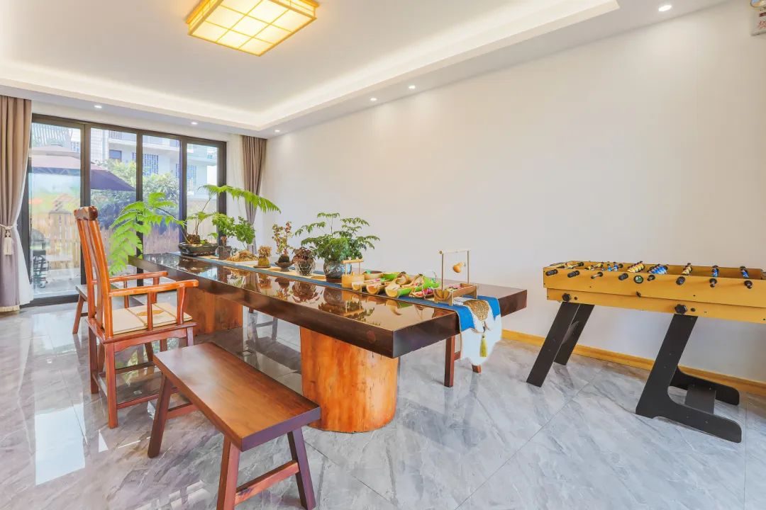 “巢吧”民宿以词牌名命名房间,民宿内泳池、茶室、花园等一应俱全。周边毗邻东平国家森林公园,是逃离喧嚣、感受自然与古韵交织的度假优选。