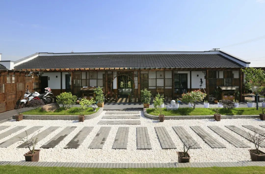 “念舍禅”民宿寄托着主人对美好田园生活的憧憬,“念”有心心念念之意,“禅”有体悟生活的意义,给来客明净安定的体验。清晨,在民宿醒来,推开窗户就是一座乡村公园,萋萋芦苇、绚丽花木、雅致桥亭等自然美景跃然眼前。