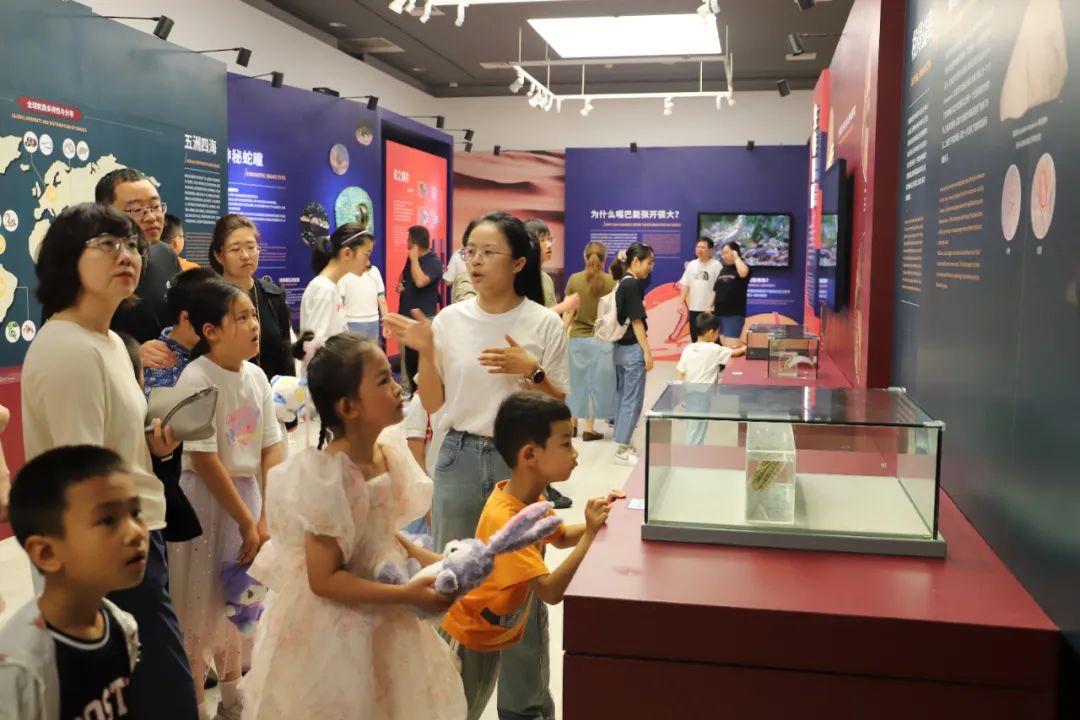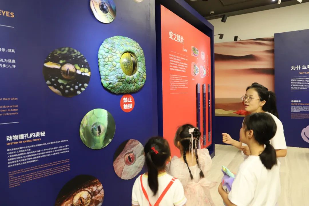 “有一只很大的蛇眼睛,眼球可以跟着人转动,像是追捕猎物一样看着我,真有意思!”“我还知道了眼镜蛇原来并不是近视眼,相反它的视力特别好。”不少小朋友争先恐后地分享着参观收获。