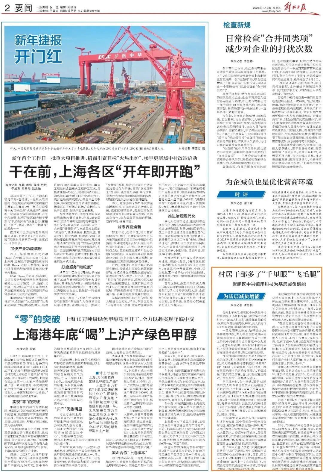 1月3日,《解放日报》要闻版刊登了《村居干部多了“千里眼”“飞毛腿”,崇明区中兴镇用科技为基层减负增能》相关报道,让我们一起了解一下。