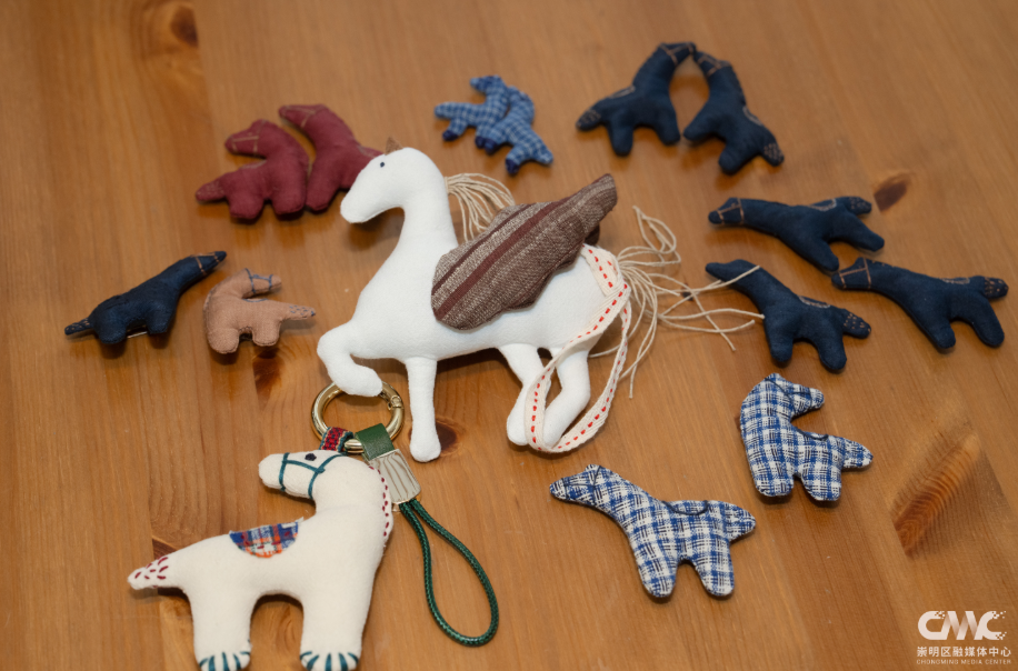 这段时间,同样忙碌的还有位于中兴镇的布土文创空间,他们精选颜色鲜艳的崇明土布,进行手工剪裁缝制,设计出多款马年特色文创产品。无论是灵动活泼的马摆件、马挂件,还是憨态可掬的摇摇马,抑或寓意吉祥的马主题立体相框,都将节日氛围直接拉满。
