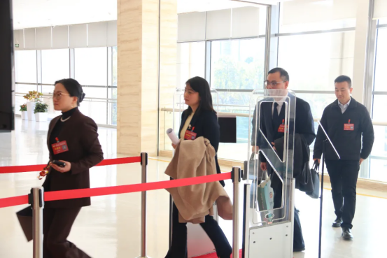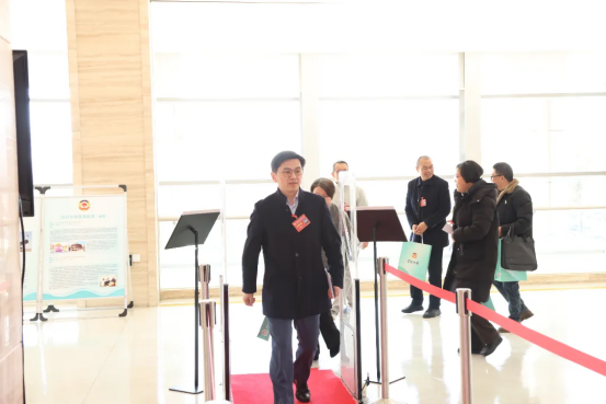 政协委员、列席人员满怀豪情、步履坚定地早早来到会议中心报到。