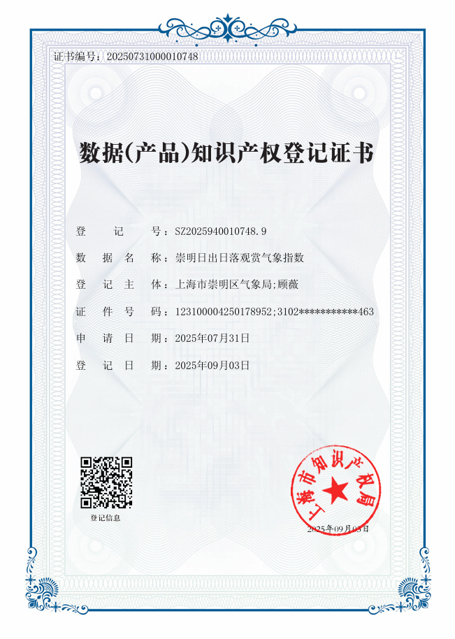记者从区市场监管局获悉,在市、区两级知识产权局的支持指导下,崇明区气象局积极开展数据(产品)知识产权登记工作,填补了崇明区在该领域内的空白,该单位的“崇明日出日落观赏气象指数”近日成功取得数据(产品)知识产权登记证书。这是《上海市数据产品知识产权登记存证暂行办法》实施以来,崇明区获批的首张数据(产品)知识产权登记证书,标志着崇明区数据知识产权登记工作取得新突破,也为本区数据知识产权的创造提供了可复制、可推广模式。