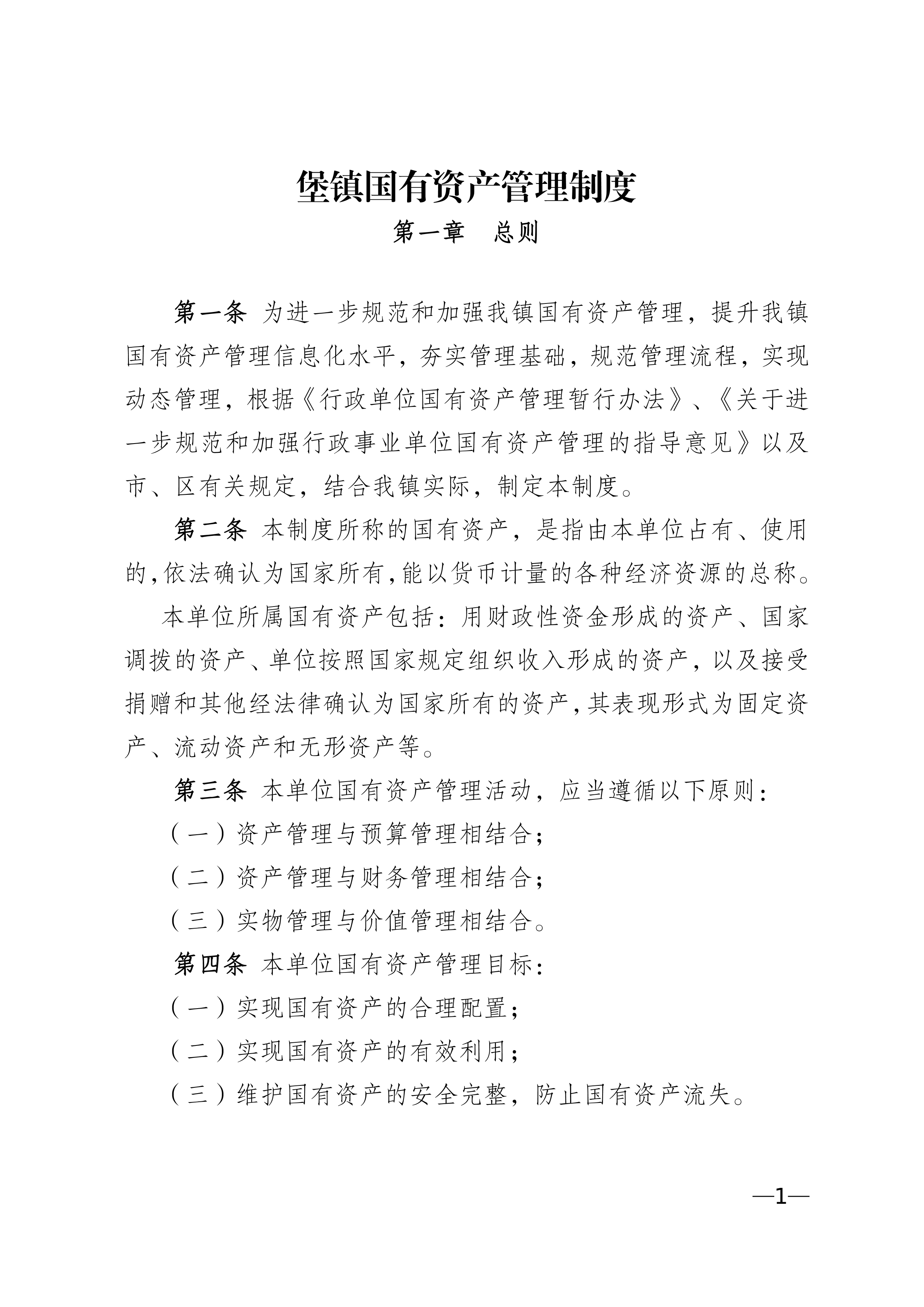 现将《堡镇国有资产管理制度》印发给你们,请认真贯彻执行。
