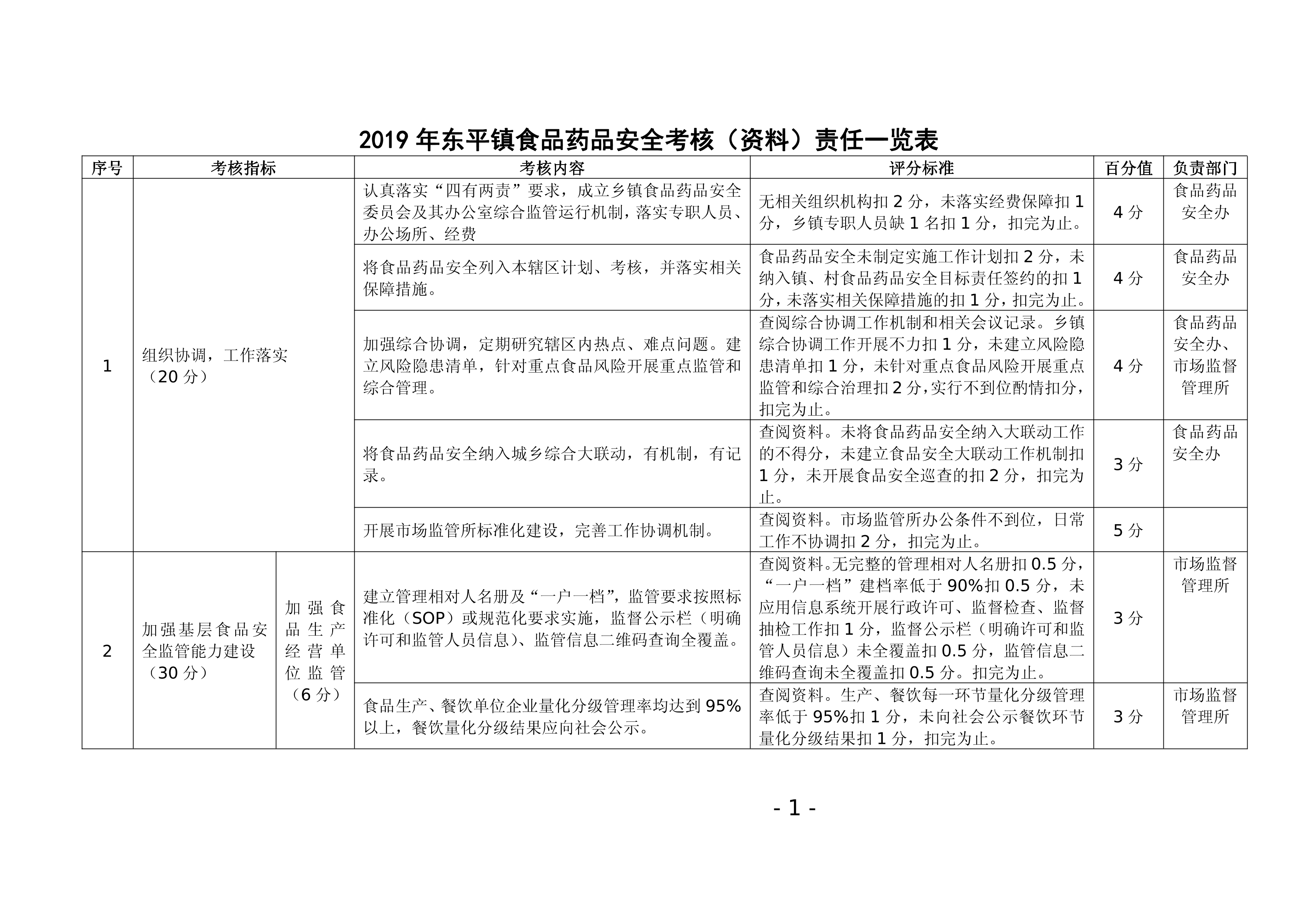 3、加强检查考核,落实食品药品安全责任追究制度。食品药品安全工作纳入各单位、科室、居委会年度工作考核,各单位要落实人员、落实责任,确保镇域食品药品安全工作平稳可控,对工作失职致使发生重大食品药品安全事件的,由镇纪委按规定实行问责。