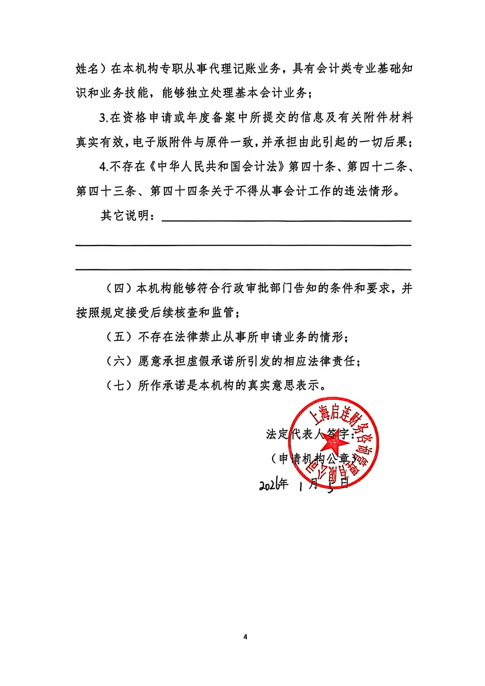根据《上海市代理记账管理实施办法》(沪财发〔2019〕4号)文规定,你单位于2026年1月12日在“全国代理记账行业监管服务平台”提交的代理记账许可证申请,我们于2026年1月12日正式受理,经审核,决定准予你单位从事代理记账业务。