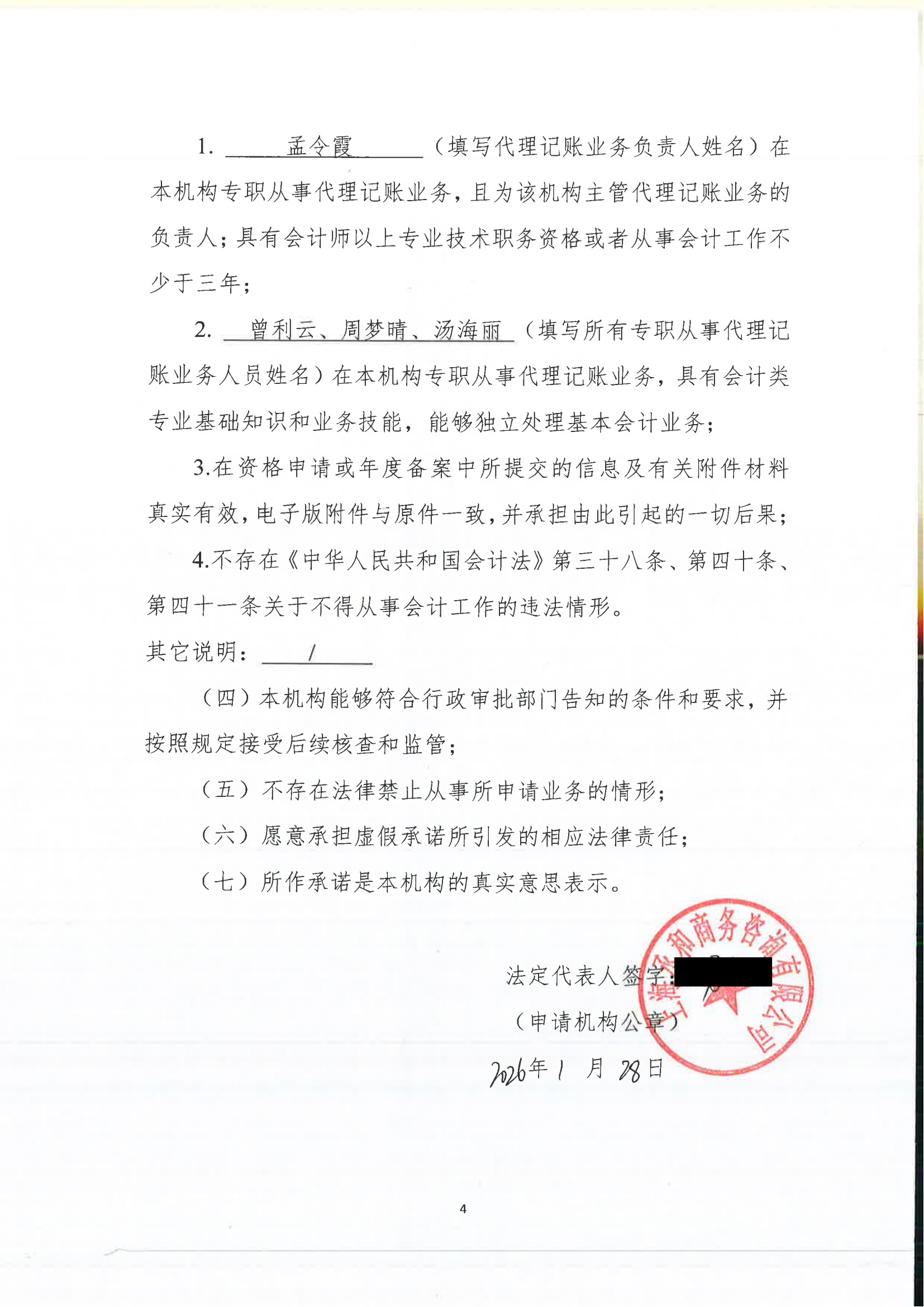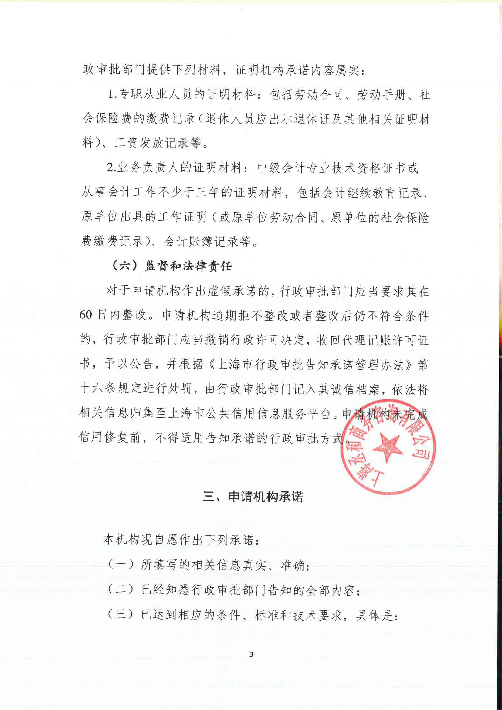 根据《上海市代理记账管理实施办法》(沪财发〔2019〕4号)文规定,你单位于2026年2月4日在“全国代理记账行业监管服务平台”提交的代理记账许可证申请,我们于2026年2月4日正式受理,经审核,决定准予你单位从事代理记账业务。