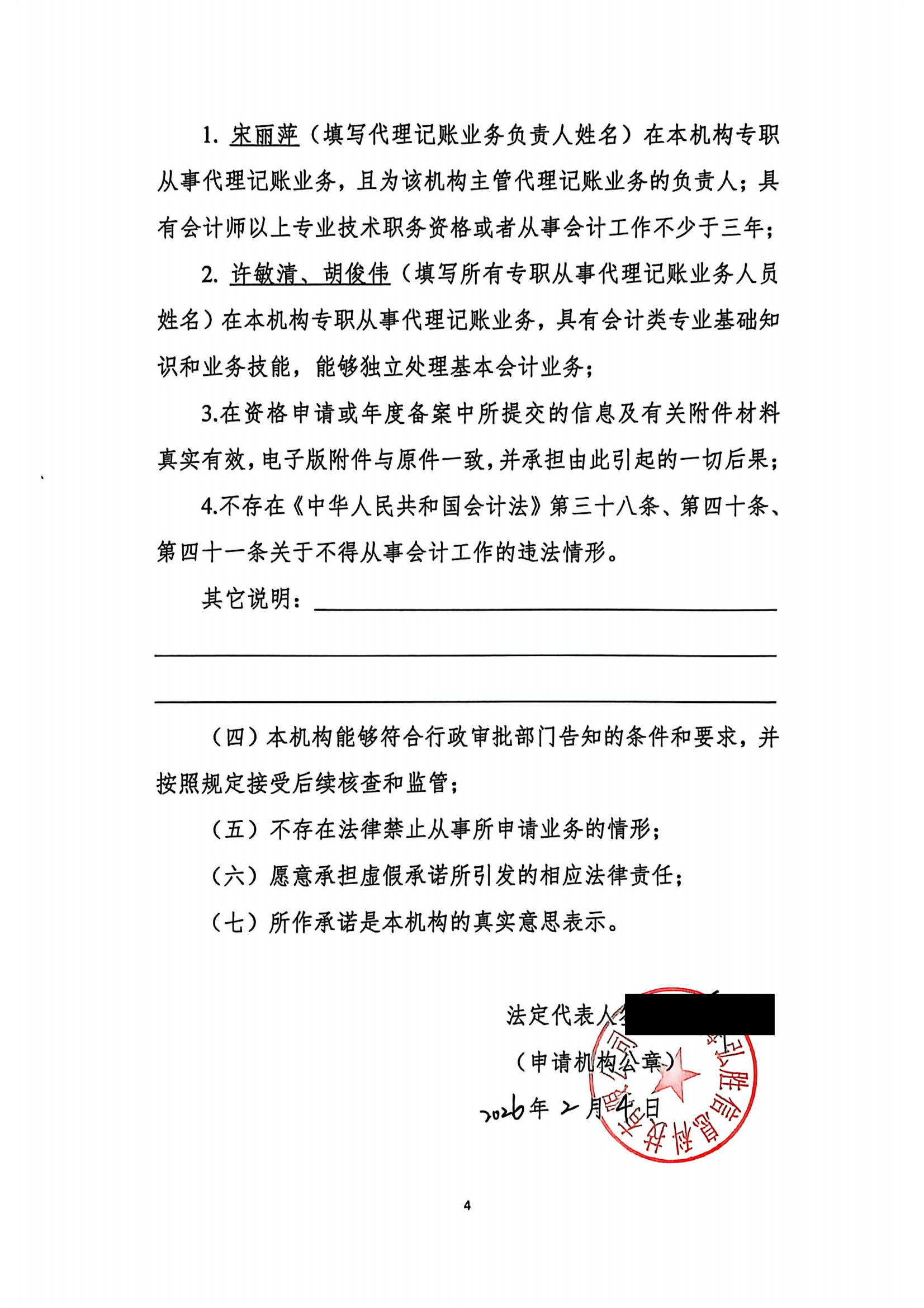 根据《上海市代理记账管理实施办法》(沪财发〔2019〕4号)文规定,你单位于2026年2月27日在“全国代理记账行业监管服务平台”提交的代理记账许可证申请,我们于2026年2月27日正式受理,经审核,决定准予你单位从事代理记账业务。