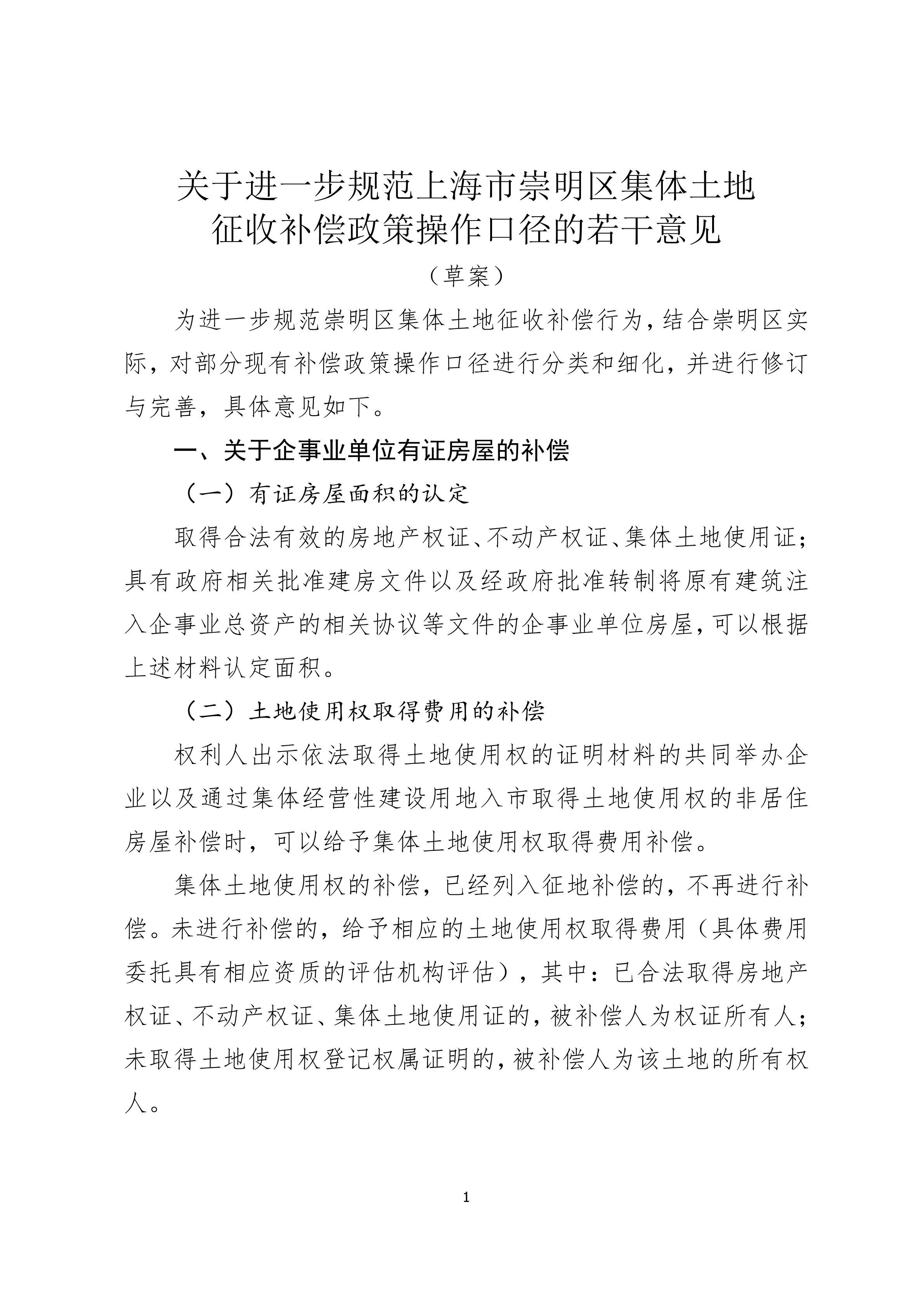 为进一步规范上海市崇明区集体土地征收补偿行为,保障重大工程及重点项目的顺利实施,我局对相关政策文件予以修订,完善了征收补偿工作机制,切实防范廉政风险。依据相关文件要求并结合崇明区实际情况,制定了《关于规范实施崇明区集体土地征收补偿工作的意见(草案)》、《关于进一步规范上海市崇明区集体土地征收补偿政策操作口径的若干意见(草案)》《上海市崇明区集体土地征收范围内大病、帮困补助发放操作规程(草案)》《上海市崇明区征收集体土地房屋补偿安置面积认定办法(草案)》《关于建立健全上海市崇明区集体土地征收补偿工作协同联动保障机制的意见(草案)》,现面向社会公开征求意见。欢迎各界人士于2025年8月28日前,通过信件、电话或电子邮件等方式提出意见和建议。