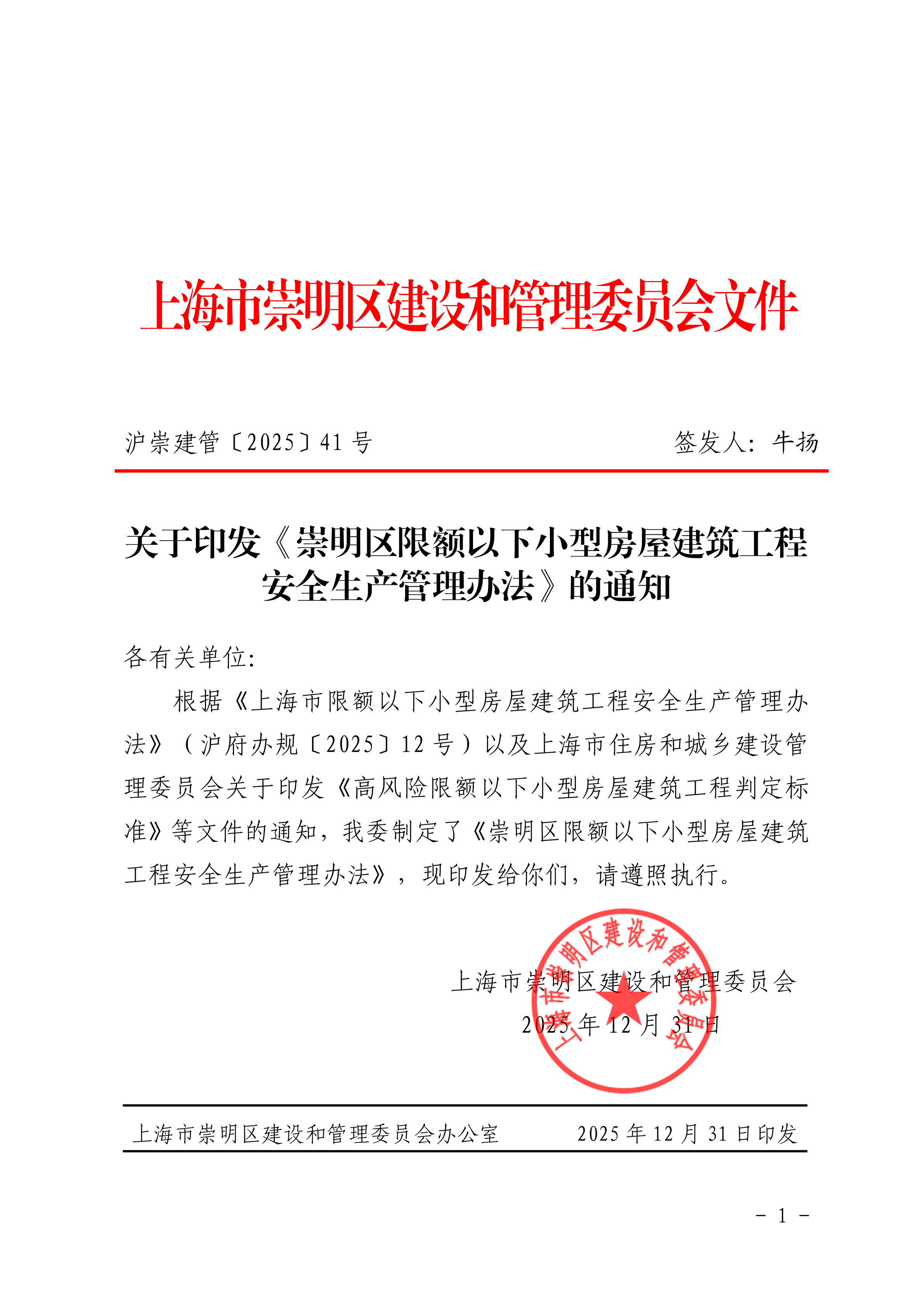 沪崇建管〔2025〕41号