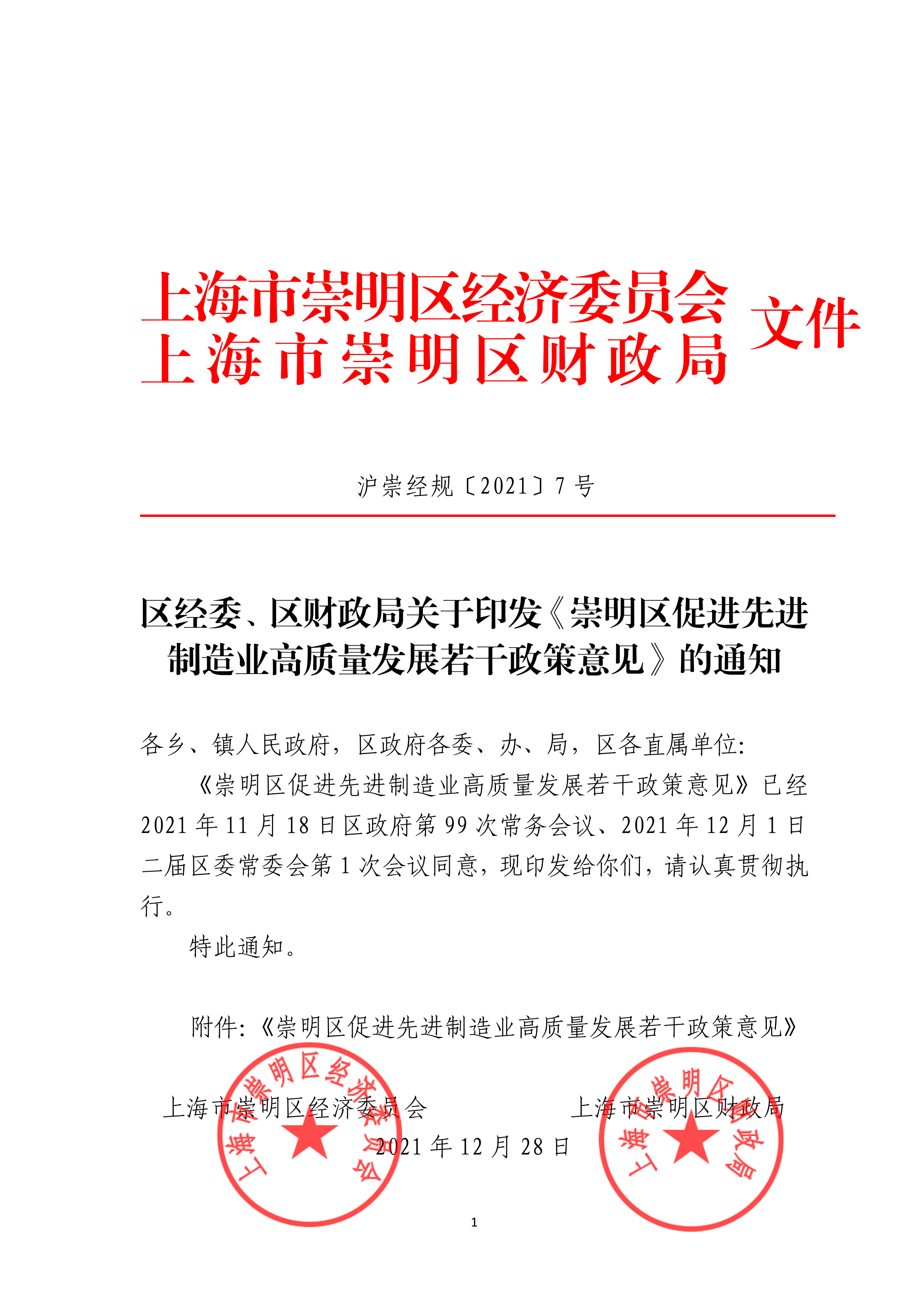 附件:《崇明区促进先进制造业高质量发展若干政策意见》