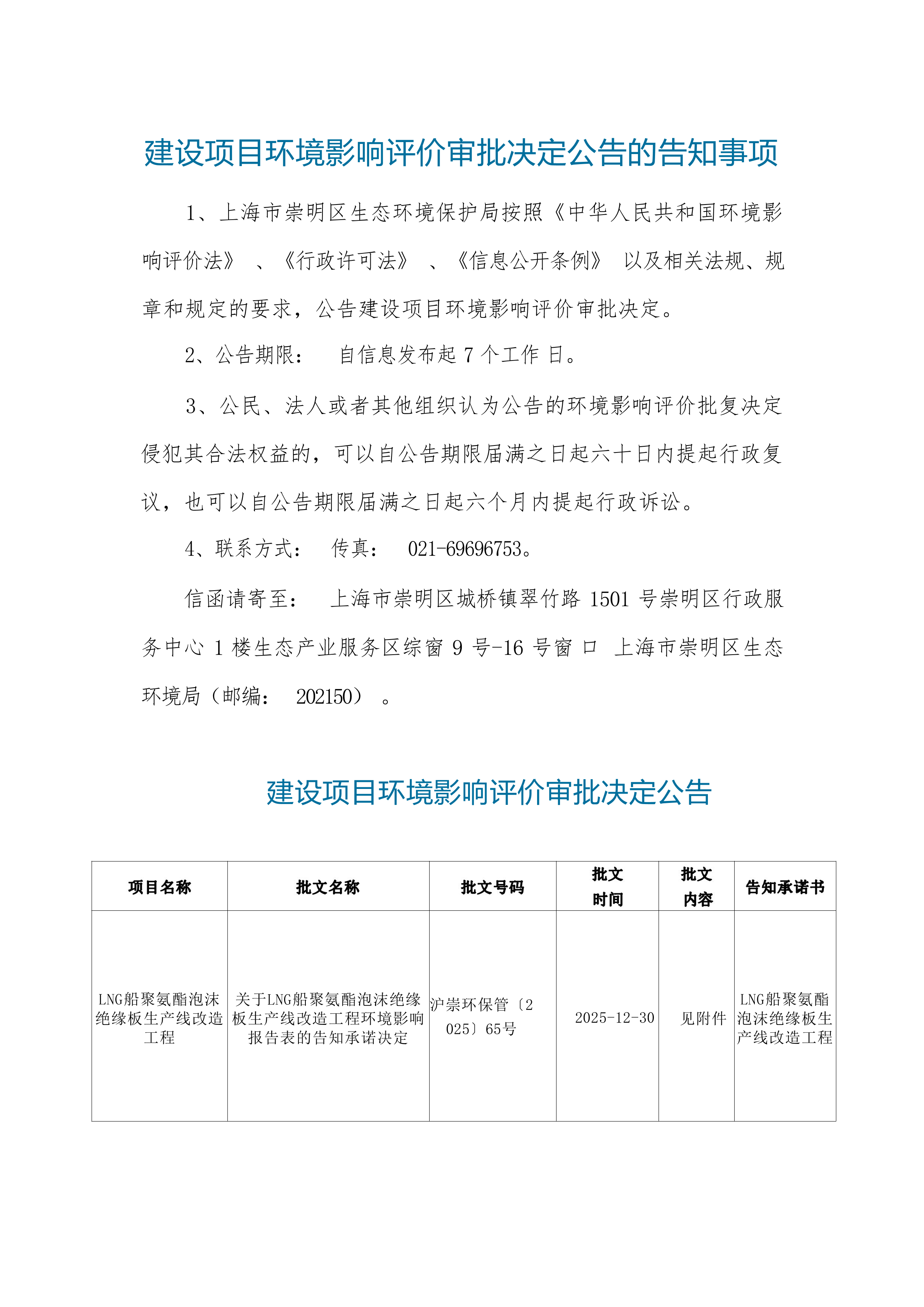 附件:1、建设项目环境影响评价审批决定公告(告知承诺)