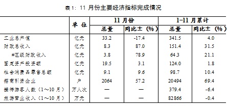 11月份,全区主要经济指标完成情况如下: