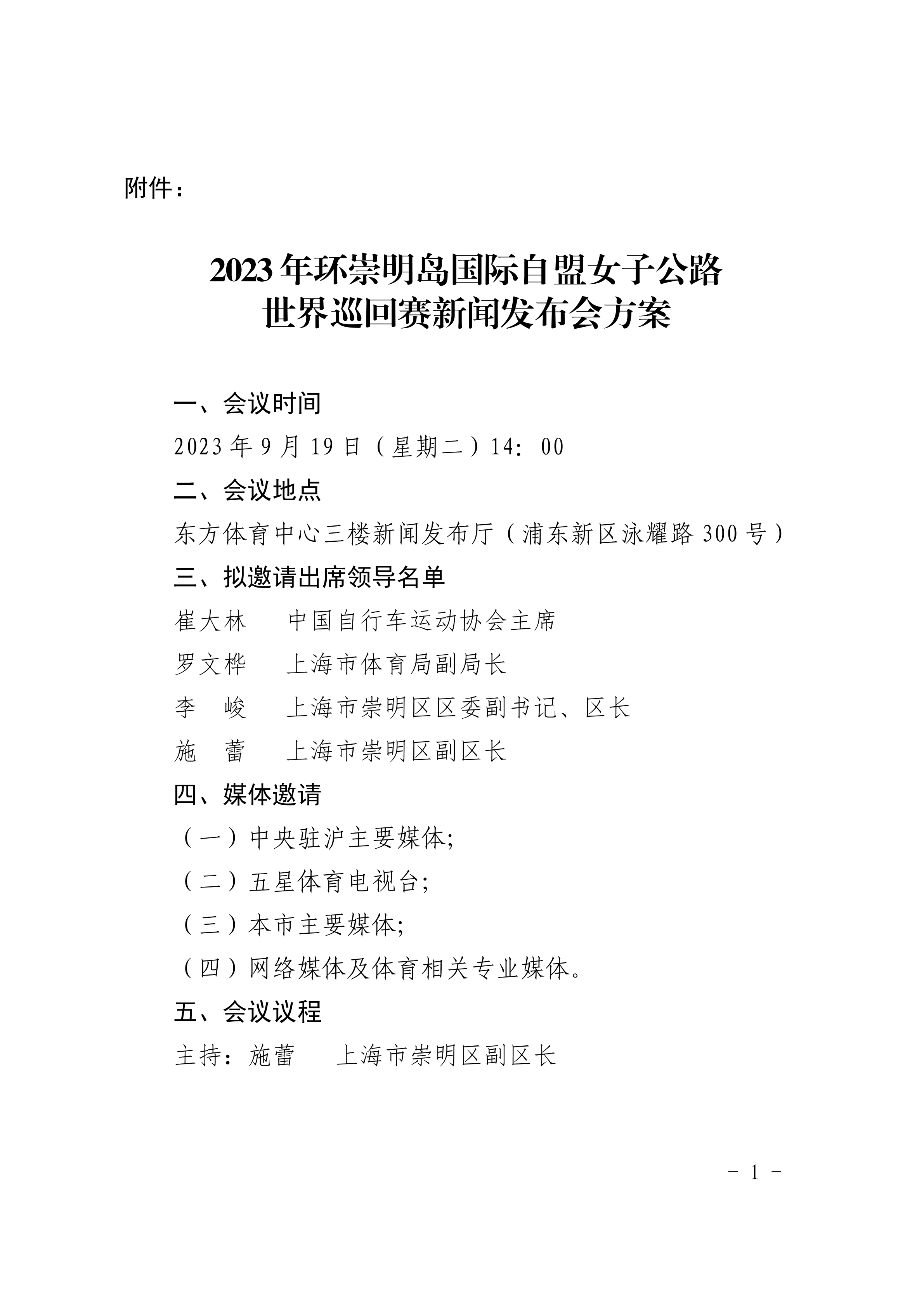 附件:2023年环崇明岛国际自盟女子公路世界巡回赛新闻 发布会方案