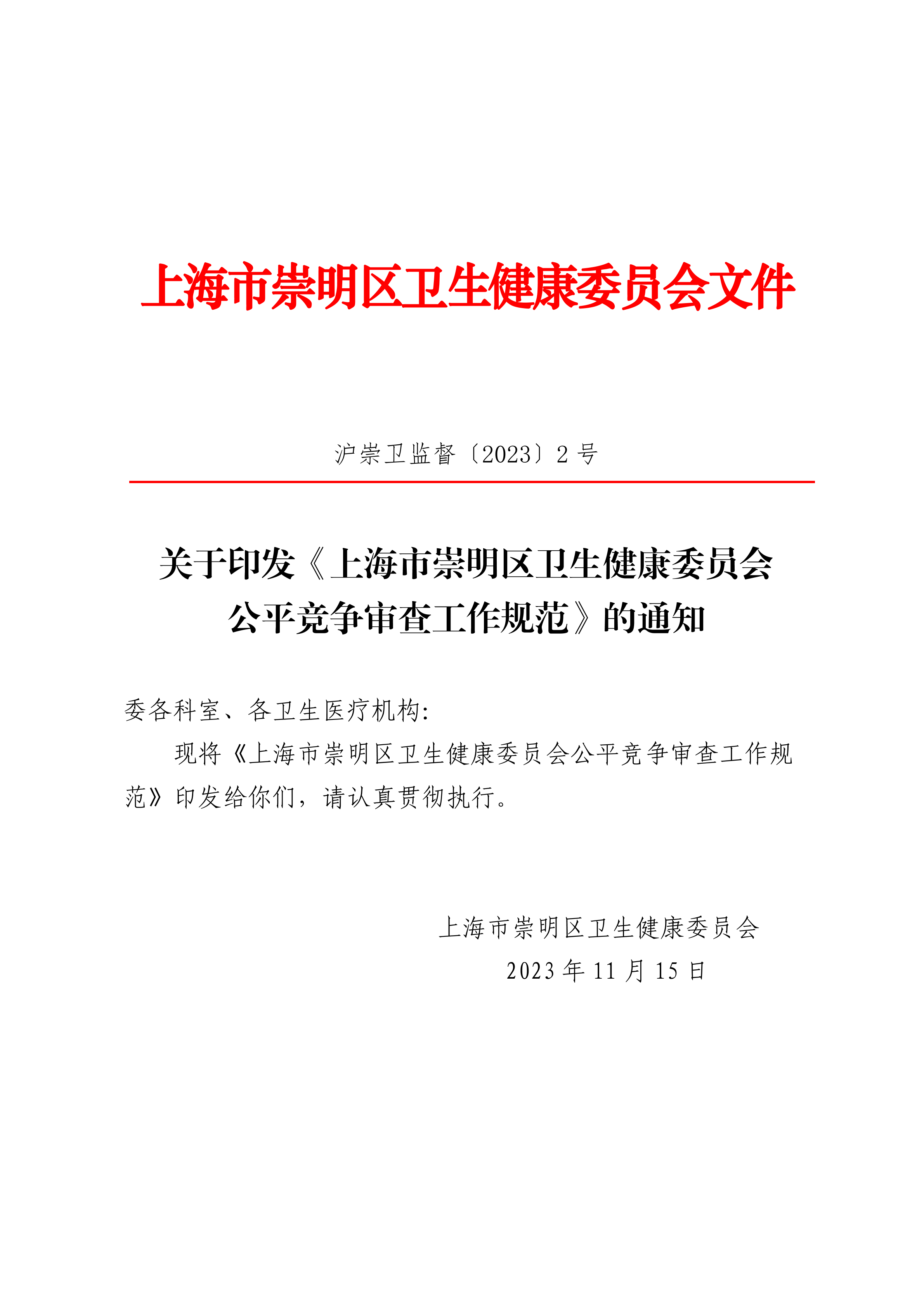 上海市崇明区卫生健康委员会公平竞争审查工作规范