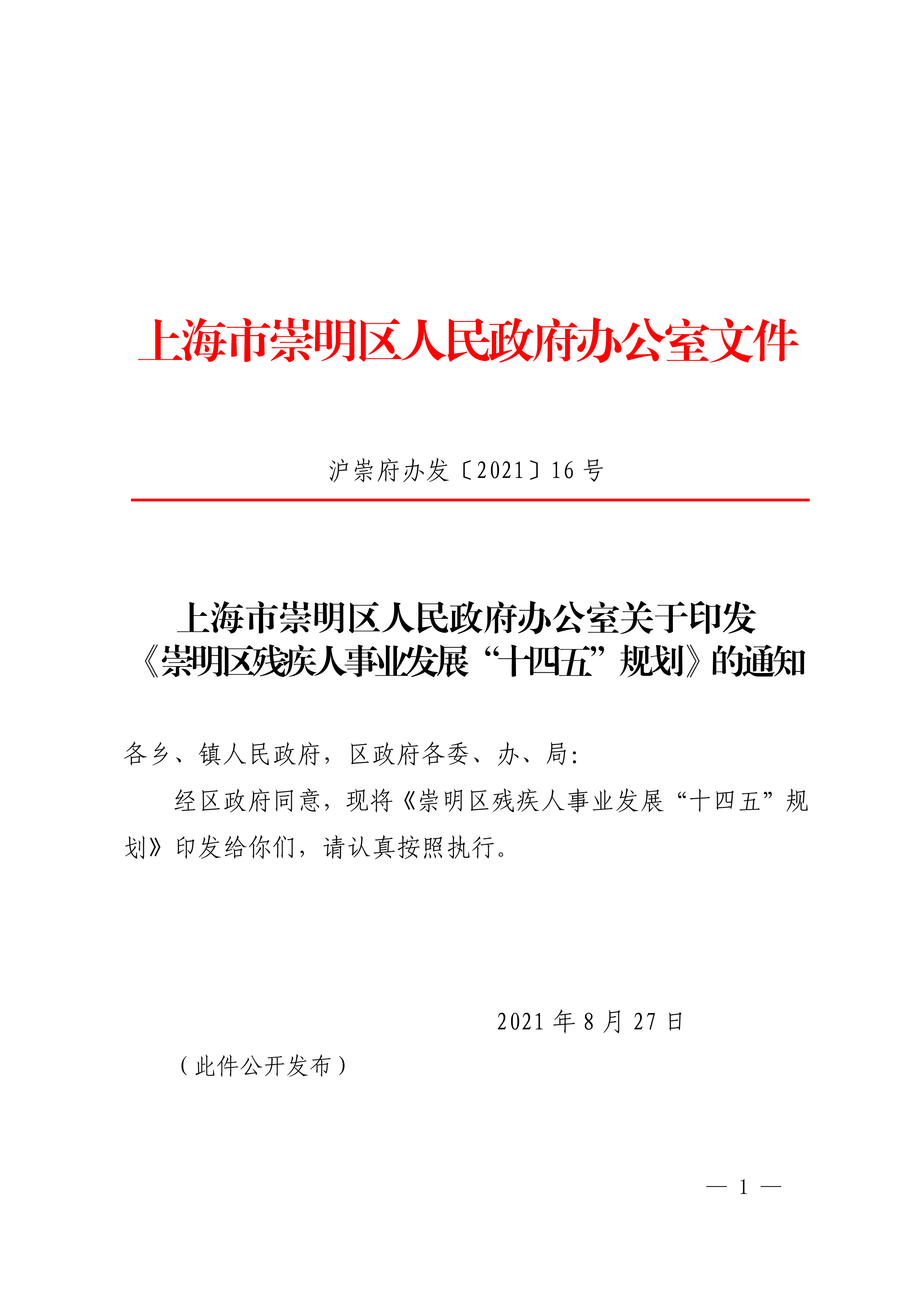 经区政府同意,现将《崇明区残疾人事业发展“十四五”规划》印发给你们,请认真按照执行。
