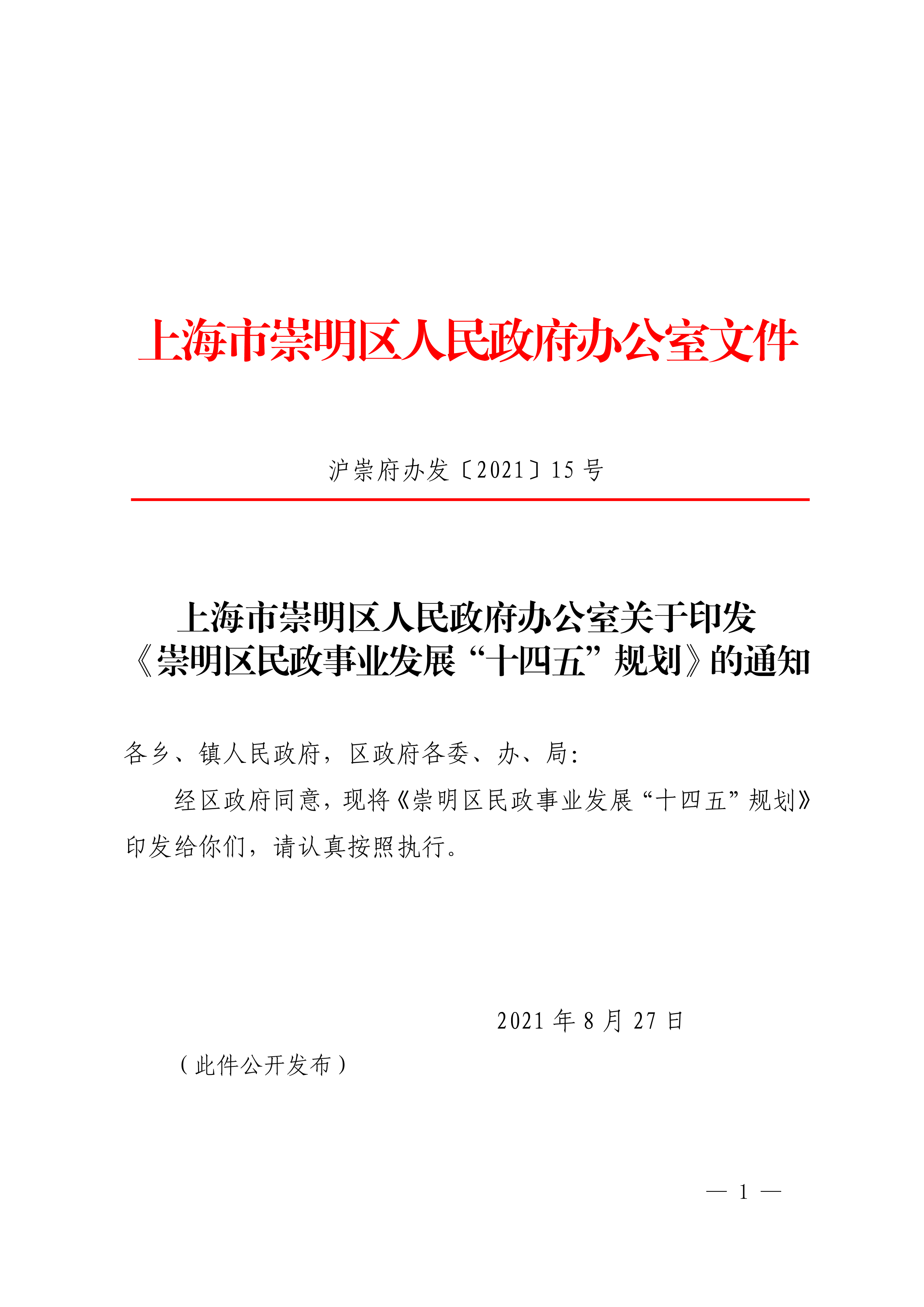经区政府同意,现将《崇明区民政事业发展“十四五”规划》印发给你们,请认真按照执行。