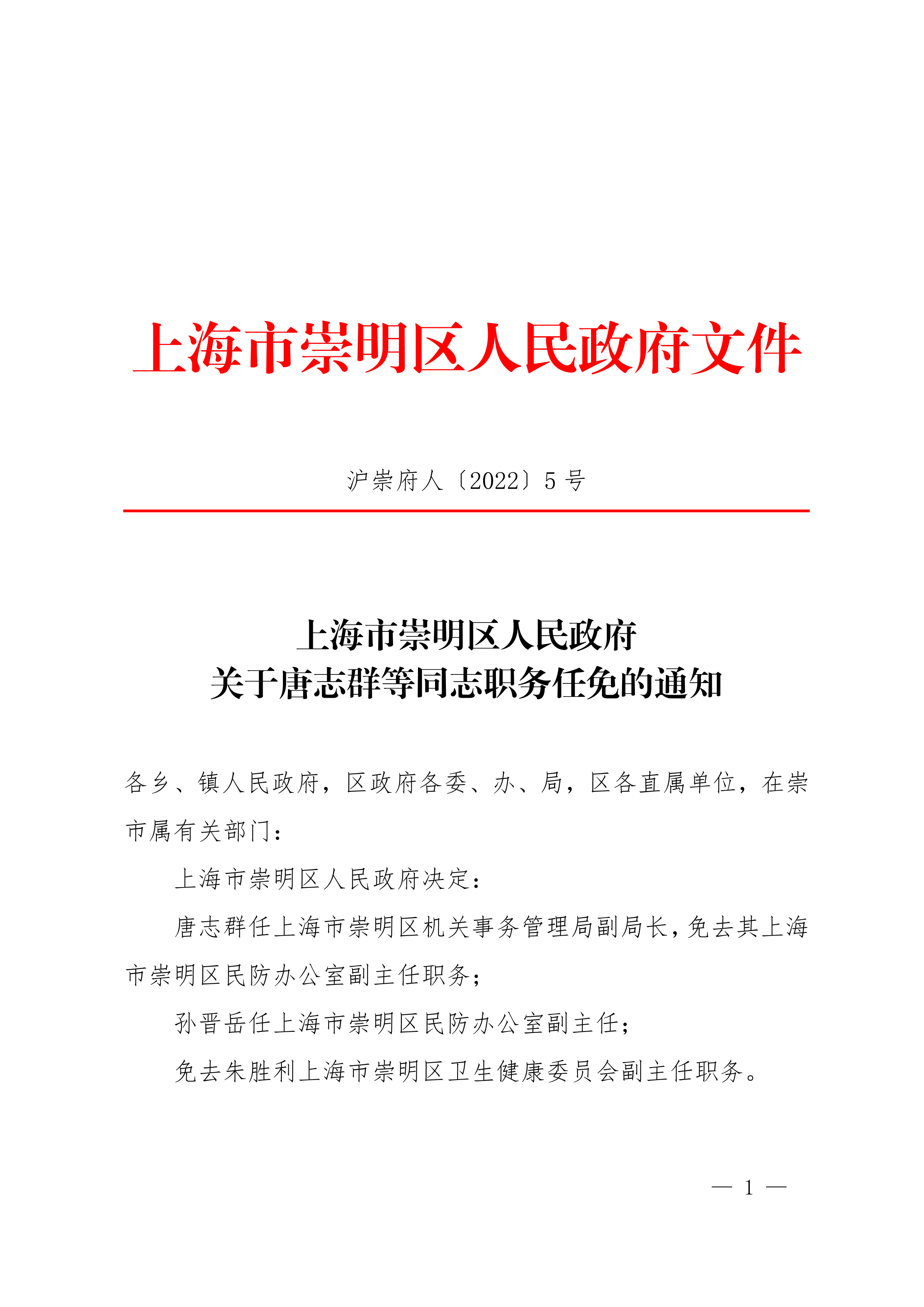 沪崇府人〔2022〕5号
