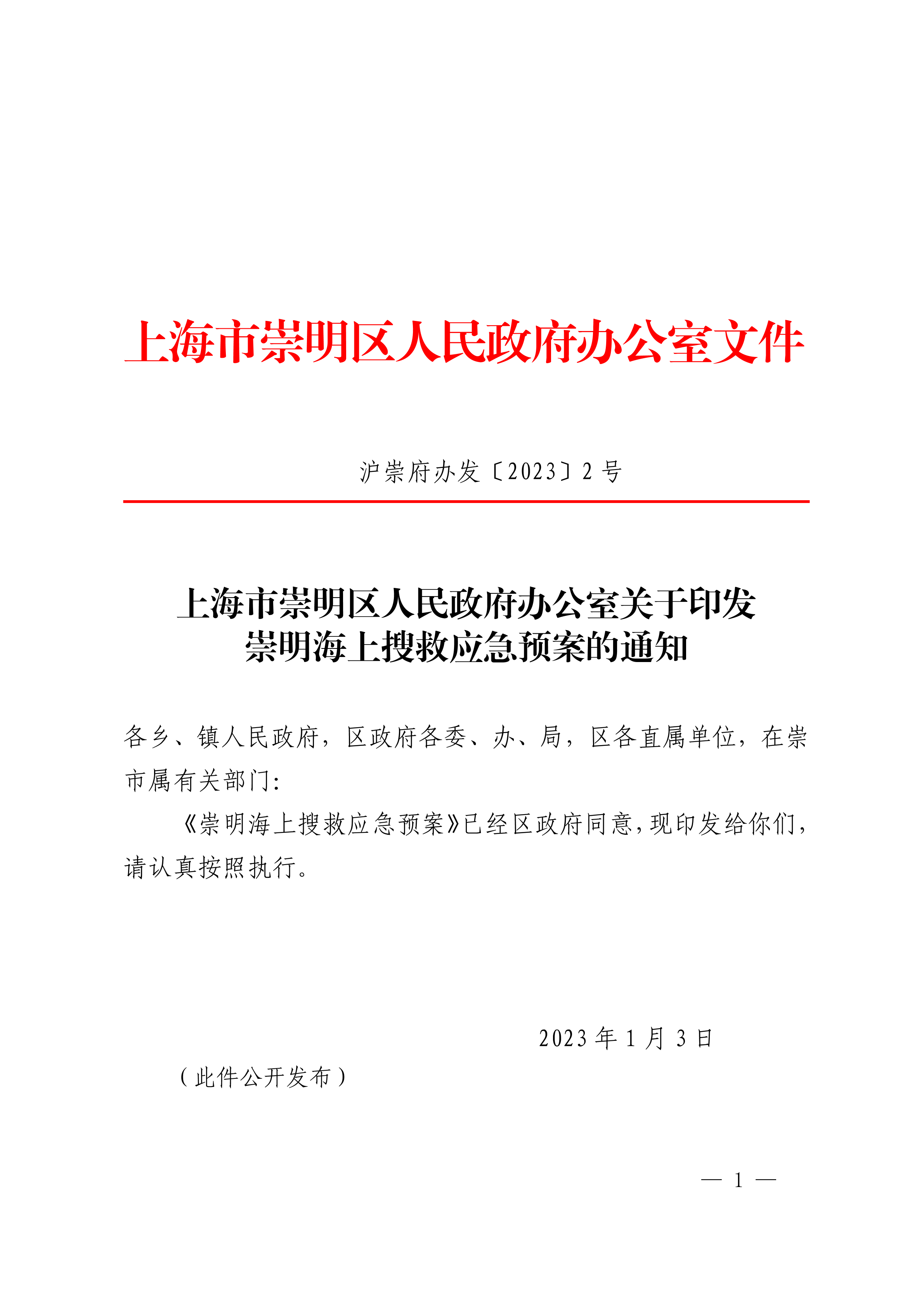 《崇明海上搜救应急预案》已经区政府同意,现印发给你们,请认真按照执行。