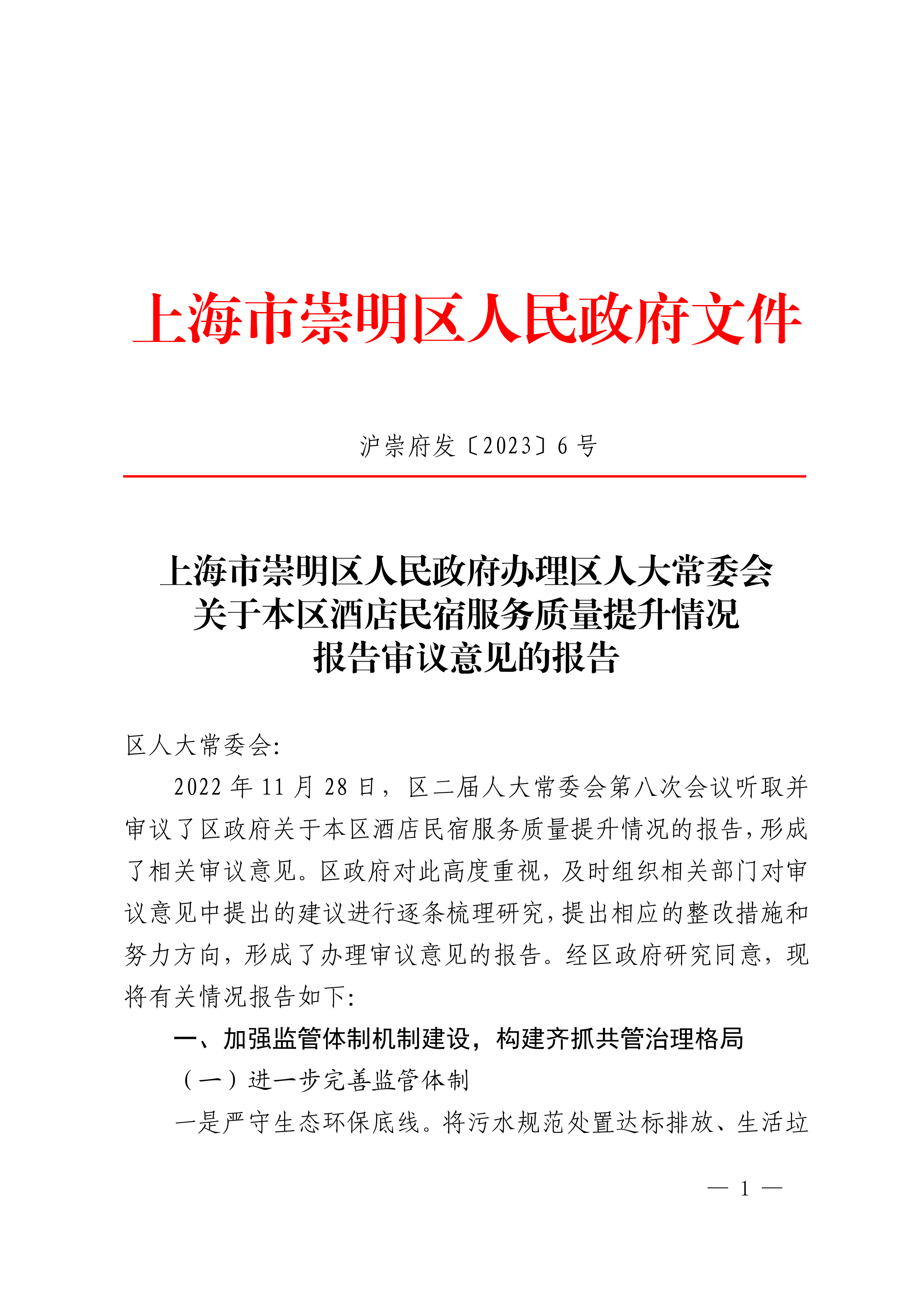 2022年11月28日,区二届人大常委会第八次会议听取并审议了区政府关于本区酒店民宿服务质量提升情况的报告,形成了相关审议意见。区政府对此高度重视,及时组织相关部门对审议意见中提出的建议进行逐条梳理研究,提出相应的整改措施和努力方向,形成了办理审议意见的报告。经区政府研究同意,现将有关情况报告如下:
