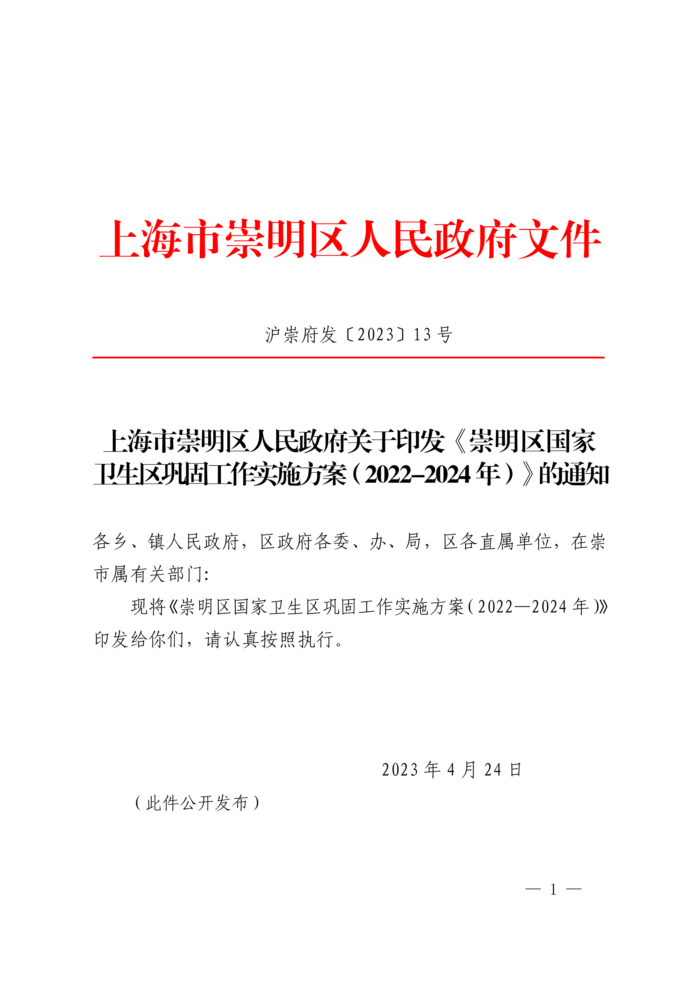 现将《崇明区国家卫生区巩固工作实施方案(2022—2024年)》印发给你们,请认真按照执行。